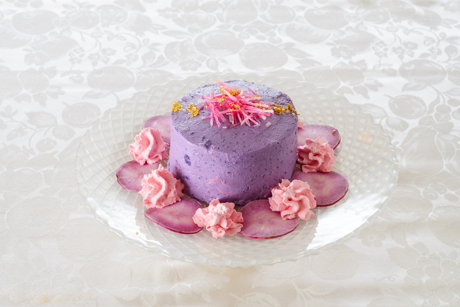 You can choose from a variety of themed cakes such as the Pastel Violet Vegedeco Salad and the Lotus Pink Vegedeco Salad. One slice costs from ¥856 or you can enjoy a set (including Vegedrop Tea and gluten-free bread made with rice) from ¥1,382. For more information, visit vegedecosalad.com.