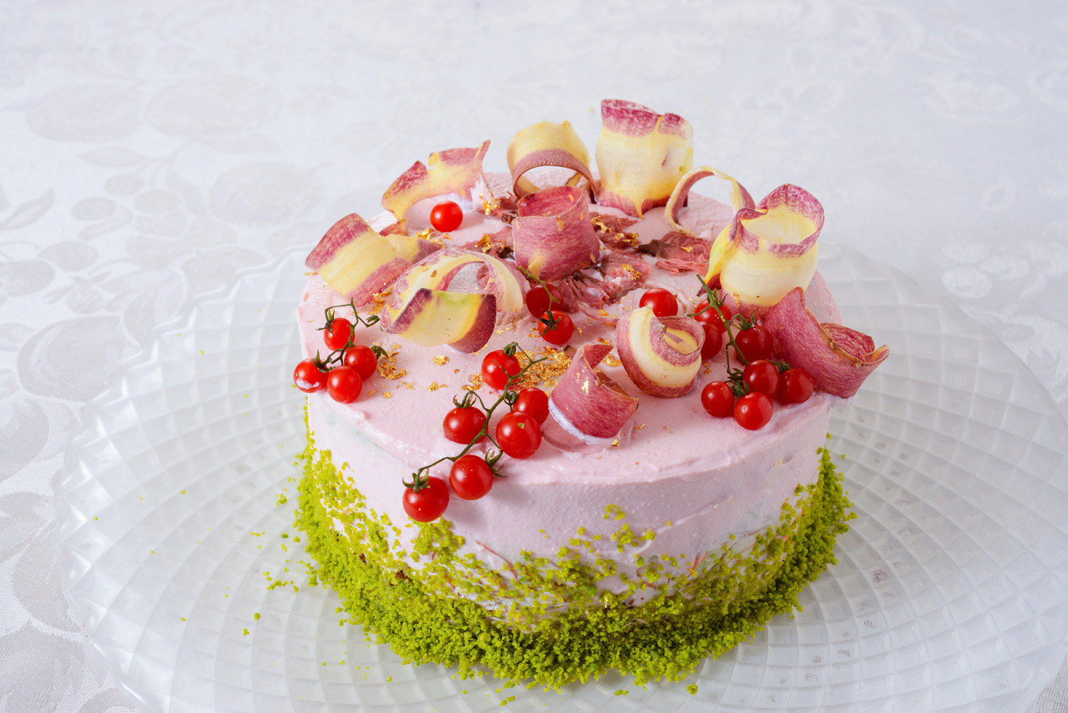 The seasonal vegetables are arranged in striking, colorful layers and surrounded by sponge cake made with natural ingredients such as soybean flour. The icing is made from tofu or cream cheese, blended with vegetables to create their pretty hues. Moriyasu makes sure not to add much sugar to her recipes and also serves a Vegedrop Tea that uses the vegetables’ roots and peels for an added health kick. Talk about a sweet detox.
