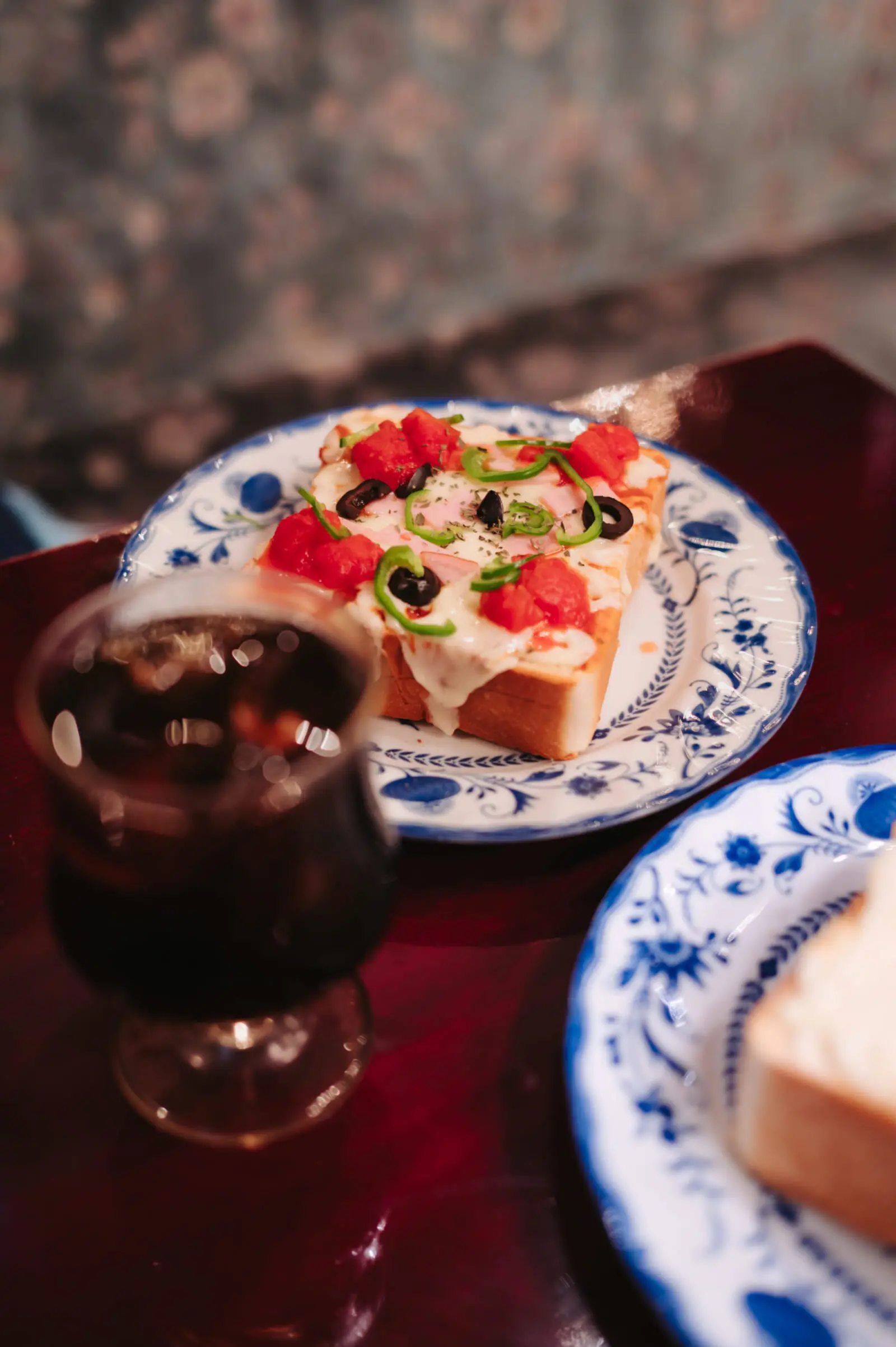 You’ll find that a kissaten’s menu is usually heavily influenced by the West, or more accurately, an imagined version of the West as filtered through Japanese culture. Don’t be surprised to see the likes of spaghetti Napolitan, caramel custard puddings and elaborate fruit parfaits. My go-to order, simply because it resembles something I would have made if I were alone in the kitchen as a teenager, is the iconic kissaten pizza toast. Imagine a big hunk of thick, soft white bread, lightly toasted around the edges, with tomato sauce, pepperoni, cheese and bell peppers on top. It has no reason to pair beautifully with black coffee, but somehow it does.