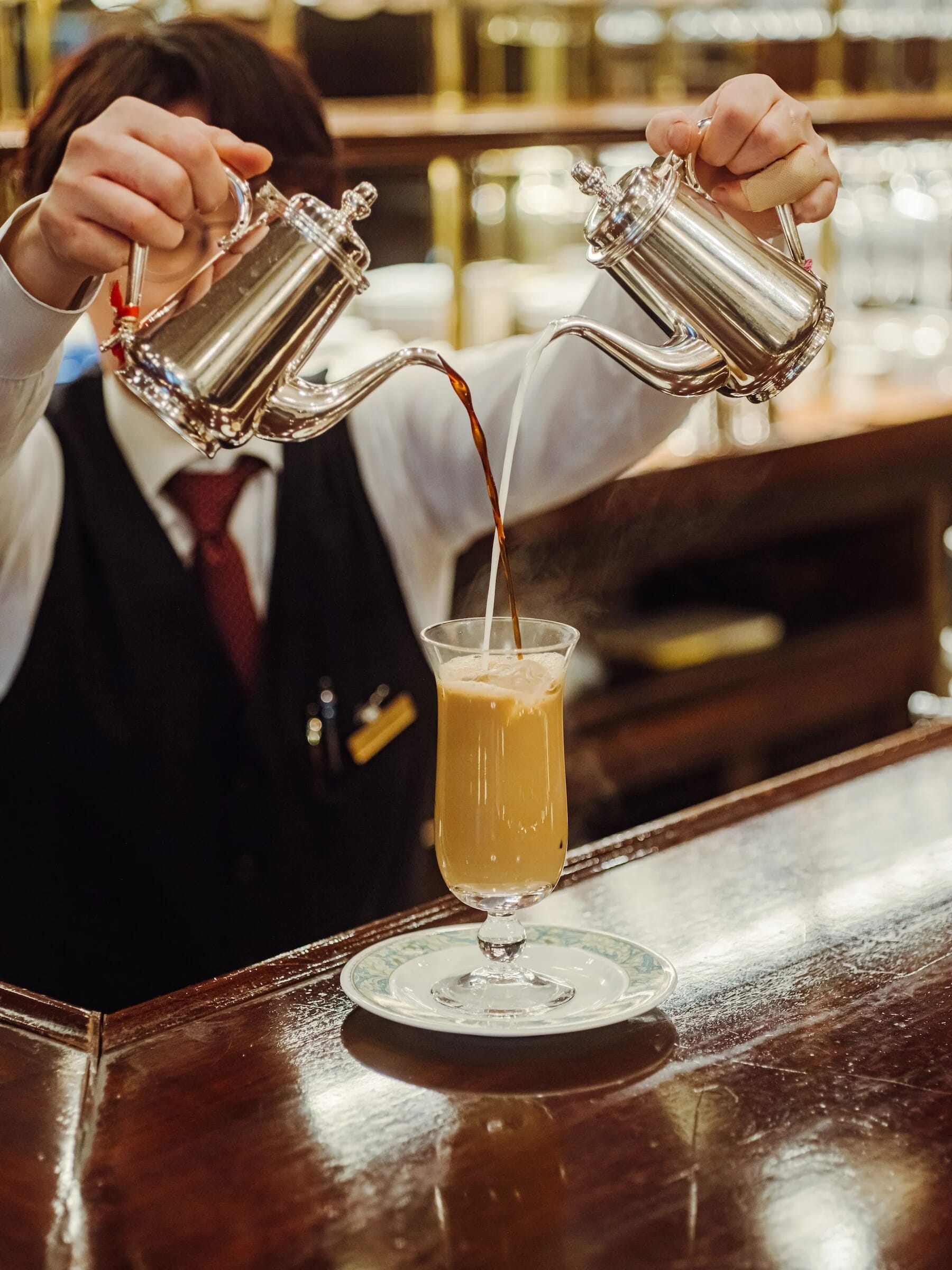 Situated in the heart of Ginza, Tokyo’s historic shopping district, Tricolore Honten is a long-established gem known for its timeless excellence. It has been around since 1936, and is most famous for its amazing cafe au laits. “The cafe au laits are poured one by one at your seat,” Yang tells us.