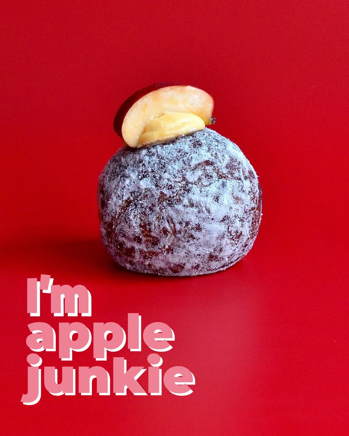 - I’m Apple Junkie – a classic donut filled with cream, cinnamon, caramelized apples and apple puree; topped with fresh apples (this product contains rum mixed into the cream filling). Inspired by the apple featured in the “Enemy” music video.