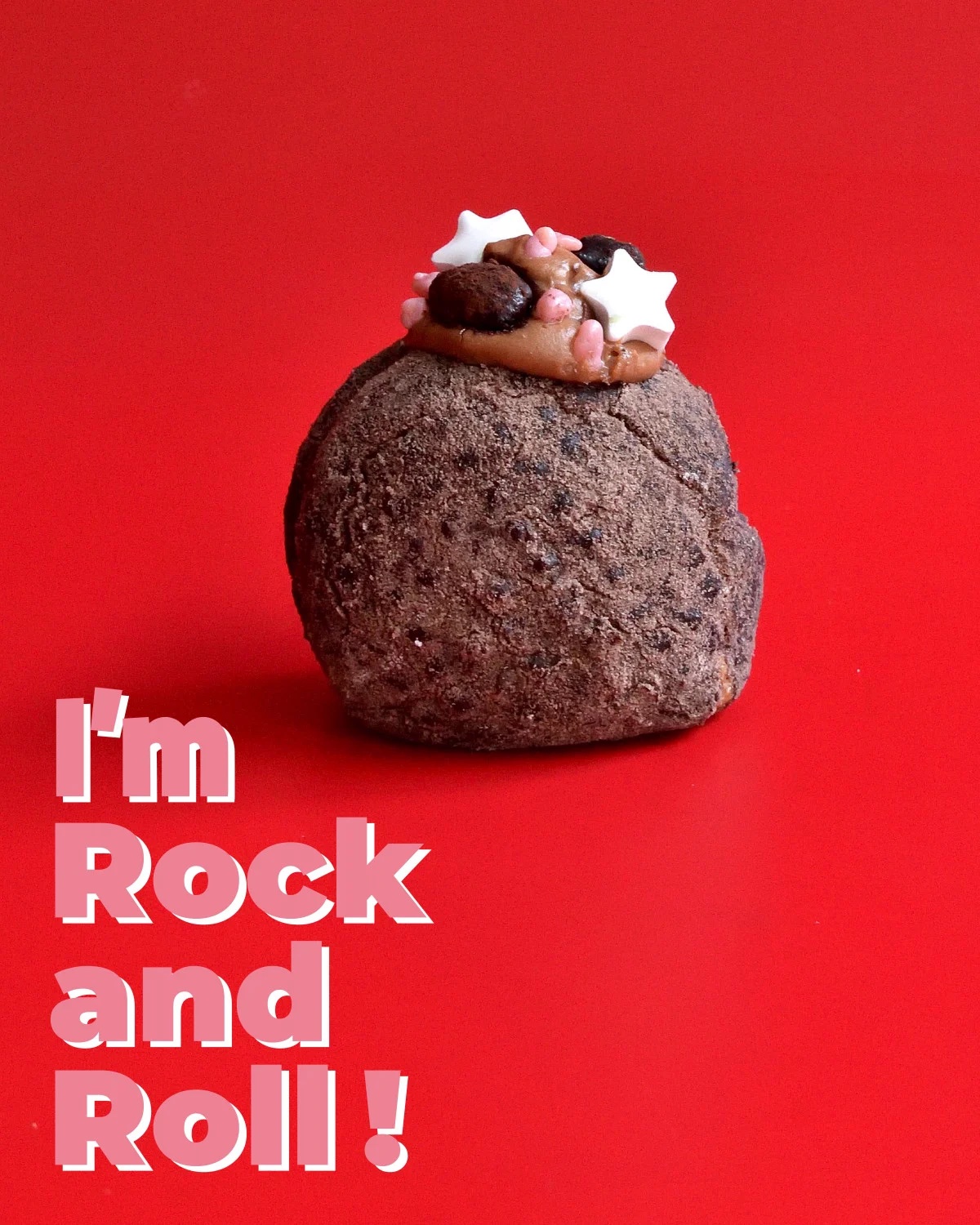 - I’m Rock and Roll! – a chocolate donut filled with chocolate custard cream, crunchy chocolate bits and a sweet and sour raspberry puree; topped with popping chocolate, caramel cocoa nuts and star-shaped ramune candy.