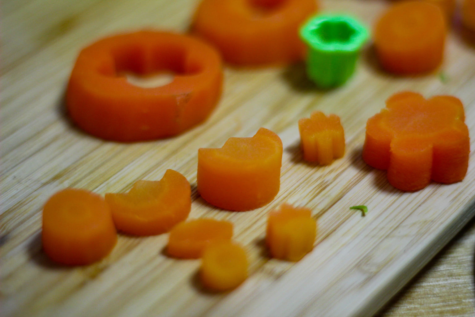 For those, like me, who want to create a bento that will wow the office, consider investing in a few silicon cups, which can be picked up from any 100 yen store. These cups are colorful, reusable and can be shaped to almost any bento box, making them the perfect ally for bento crafting. More often than not these cups are used for smaller vegetables which would otherwise scatter around if not placed in some kind of stylish container. There are also fun little cutters to cup vegetables into adorable shapes. That’s one way to get your five a day I guess.