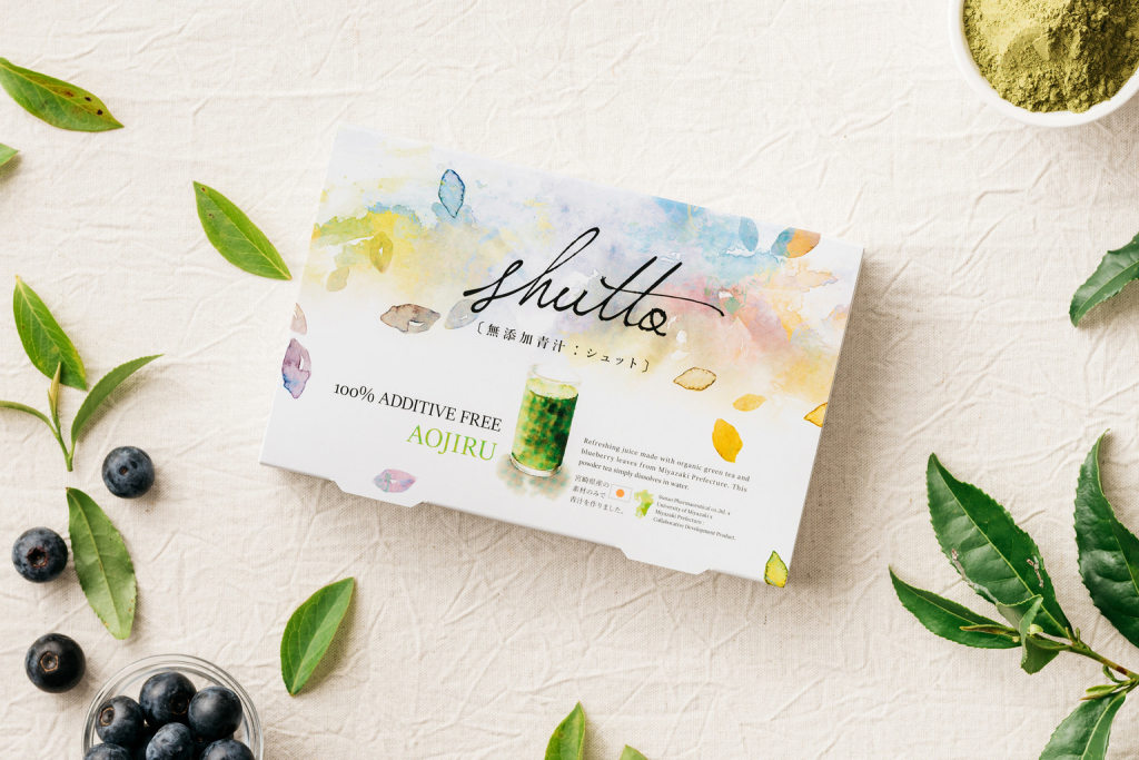 The additive-free green juice shutto is made using only natural ingredients, including blueberry leaves and kamairicha (pan-fried green tea leaves), both of which are specialties of Miyazaki Prefecture. Each serving comes in a beautiful packaging, made with interior design in mind. ¥2,916, sunao831.com