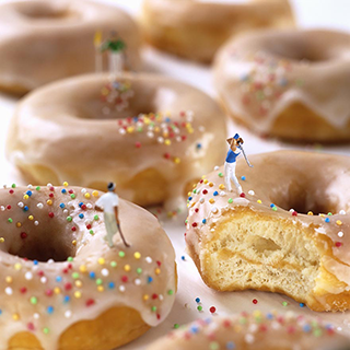 Ever wonder what it’s really like to get up close and personal with your food? Instead of just eating it, what would it be like to skate, bike, golf, build or climb up it? Assuming you’ve never skateboarded in the pit of an avocado, or walked on the edge of a chopstick, you’ll have to take a look at this duo’s artwork to see what everyday life would be like surrounded by giant-sized food.