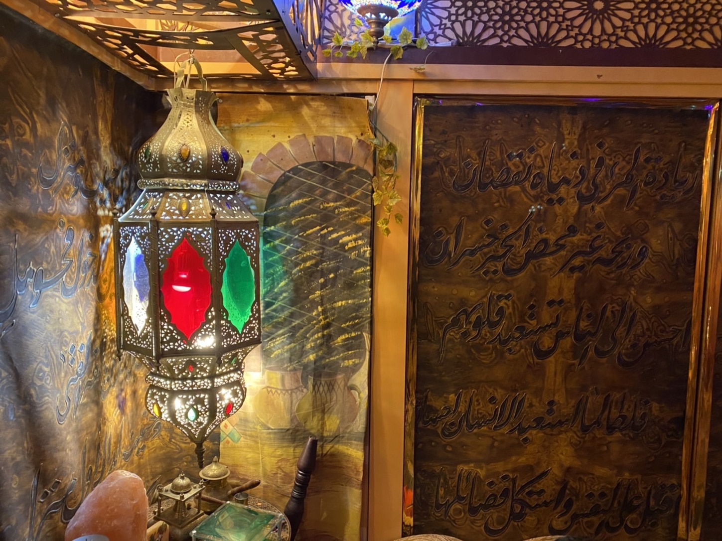 With its interior decked out in appropriately extravagant Arabic decor and gentle music, visitors will feel welcomed and at ease as soon as they step through the door and embrace the fragrance of spices. Comfortably cozy cushions, carpets and curtains, combined with walls adorned with all sorts of evocative Arabian imagery of camels and desert sands, invite you into a world very different from the array of bars and izakaya a hair’s breadth away.