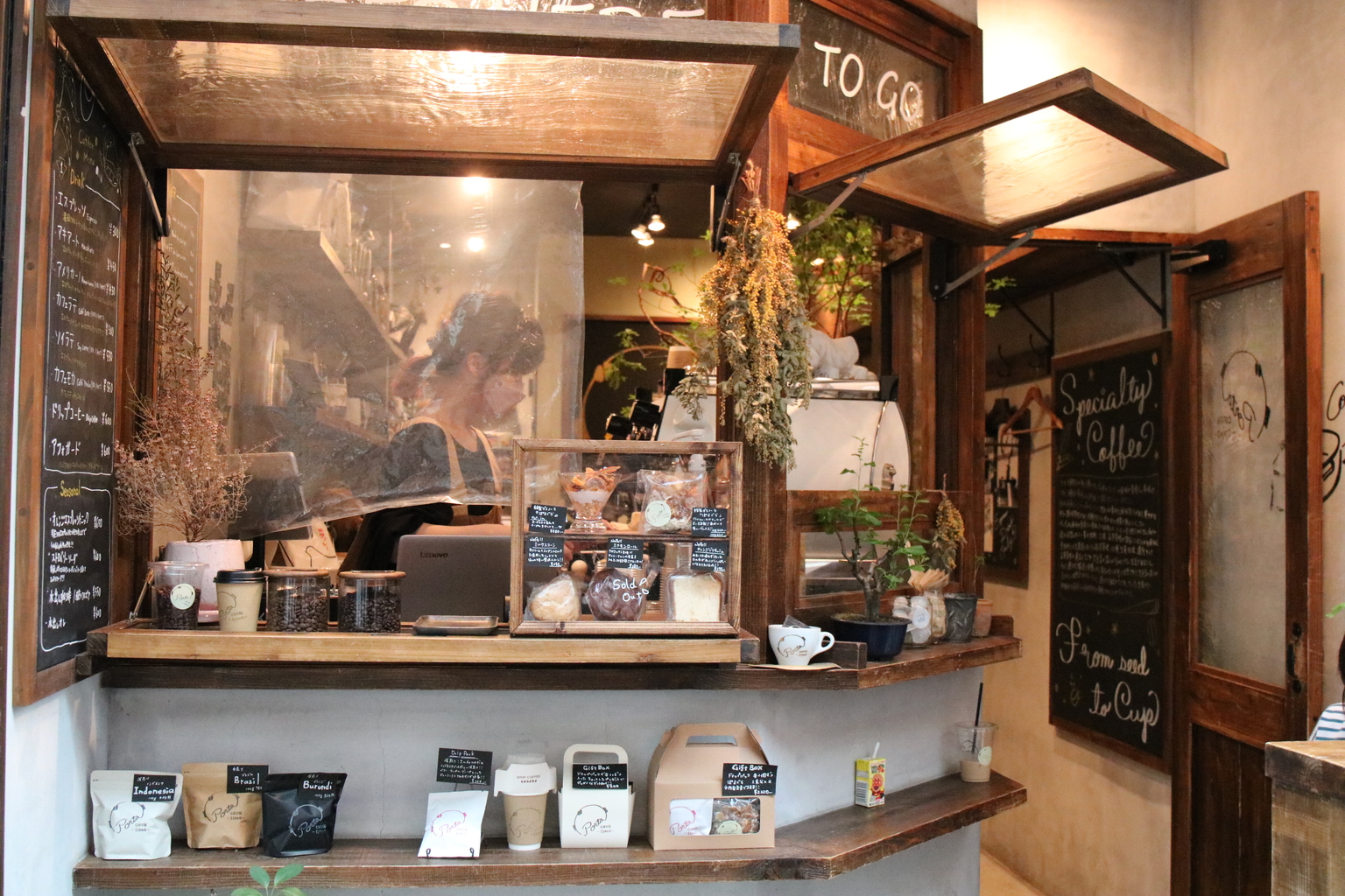 The shop is small but it has a very welcoming atmosphere. You can squeeze in at the counter and make some friends, or grab a drink from the takeout window and explore Koenji.