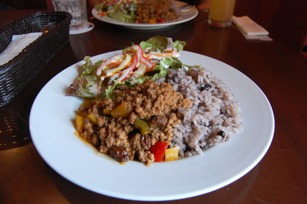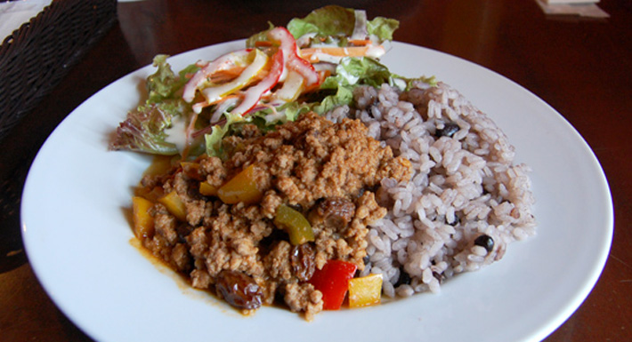 During weekdays ¥900 buys you a choice of pollo asado (Cuban style roast chicken and rice), picadillo (a stew of shredded beef and vegetables) accompanied by salad and black bean rice, or the slightly unusual ‘Cuban curry,’ served with rice. All lunch sets come with a drink, making this great value for money.