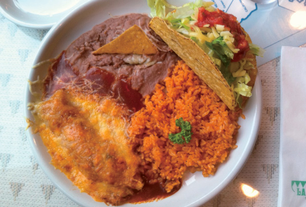 While this option was definitely tempting, we decided to go for something a bit more modest in scale and ordered from the combination menu, which enables diners to choose from a range of popular main dishes accompanied by Mexican rice and refried beans. Hoping for the best of both worlds, I opted for a chicken enchilada and beef taco (¥1,680). The chicken was shredded, cooked and seasoned to perfection with just the right amount of spicy kick, and the enchilada was smothered in the typical red sauce and an ample amount of melted cheese. Complemented by the rice and beans, it actually made me think—if only for a moment—that I was dining in one of my favorite Tex-Mex restaurants back home. The taco as well did not disappoint, filled to the brim of its crispy shell with fresh lettuce and seasoned beef, then topped with shredded cheese and Mexican salsa.
