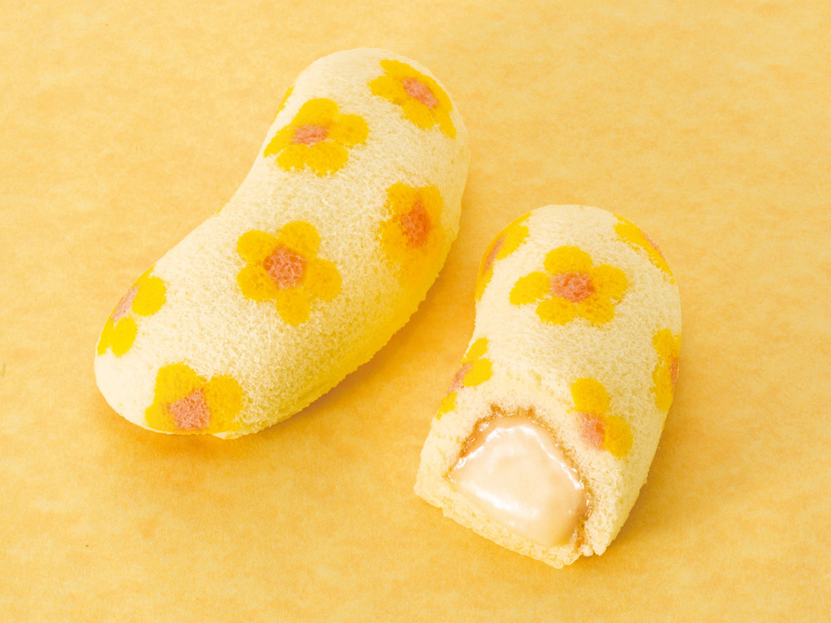 The banana shake-flavored treats, which are only available through this summer, are decorated with a flower pattern, and are filled with banana custard cream. The outer sponge cake, meanwhile, has a fluffy, melt-in-your-mouth texture and a vanilla flavor.