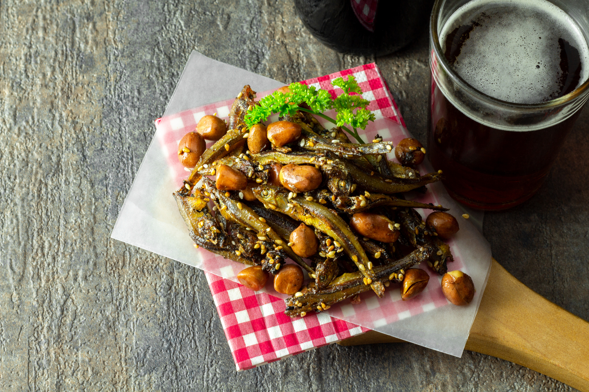 The dish is sardines boiled in soy sauce. Historically, sardines were used to fertilize rice fields, and this word means “rice field maker” in Japanese. Symbolically, this food is eaten in the hopes that the coming year’s harvest will be plentiful.