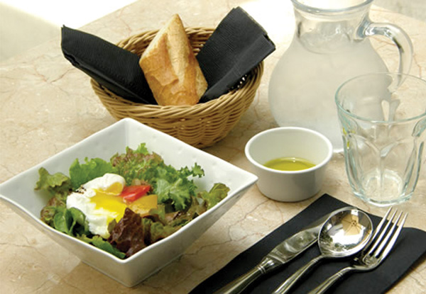 By no means am I an expert on French food, but when a Parisian friend of mine recommended Milieu for its well priced, authentic fare, I checked it out. The evening was clear and balmy, so I chose a seat on the terrace and settled in to see what my meal would have in store for me. Since the menu changes daily based on the freshness and availability of meats and produce, one never knows quite what to expect at Milieu. The dinner menu (¥2,100 ) includes an appetizer, main and dessert, and there are generally three of each from which diners can choose.