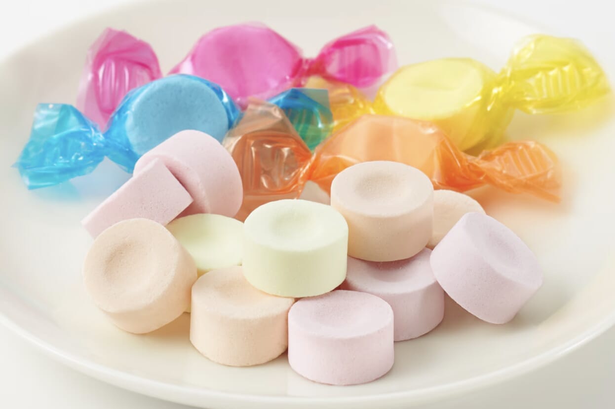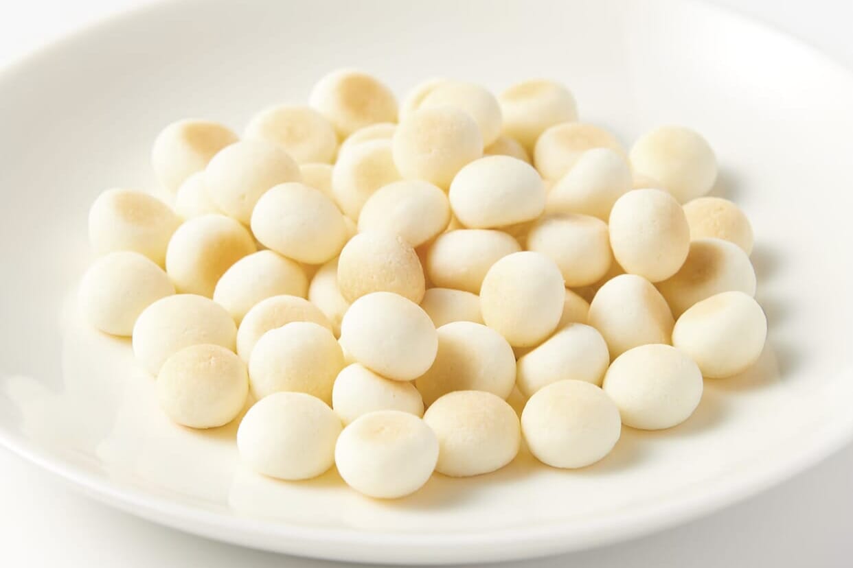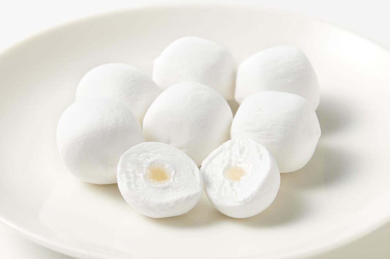Among the marshmallow flavors Muji produces, this one is perhaps the most popular. These ball-shaped marshmallows are airy, powdery and squishy like your average western marshmallow, but contain a sweet and sour yogurt jelly center.