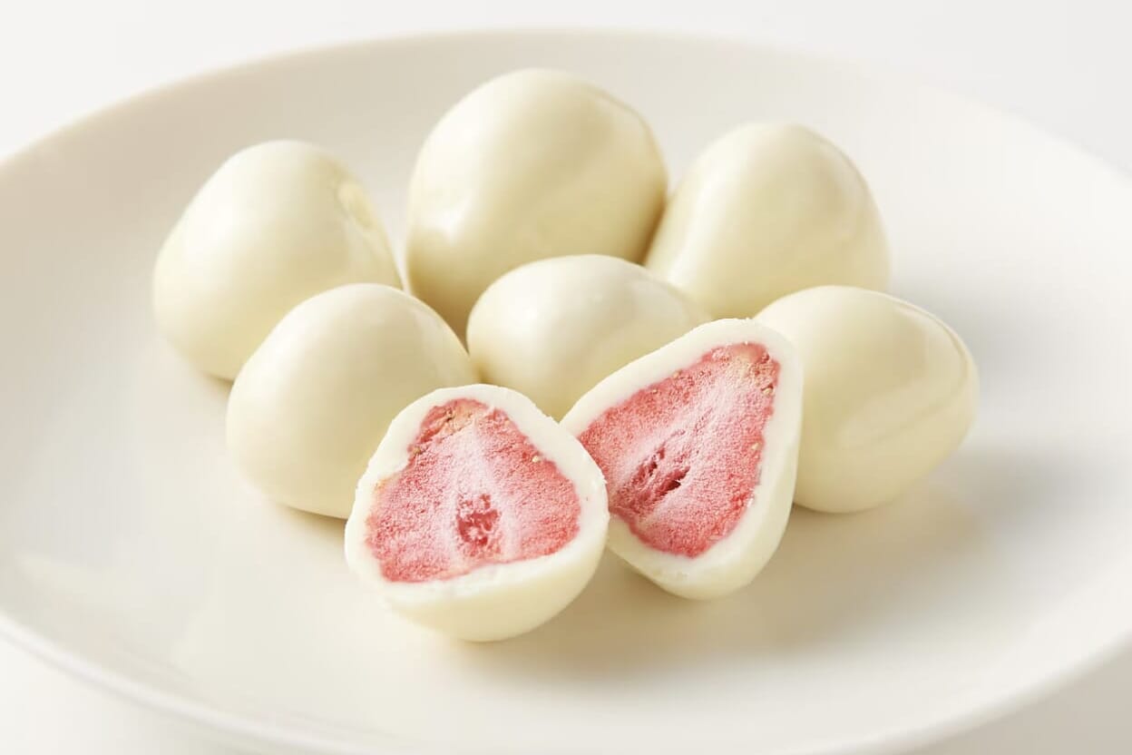 These strawberry chocolates are true Muji classics. They are whole freeze-dried strawberries encased in a glossy chocolate coating, blending tartness and milky sweetness. Due to their immense popularity, a white chocolate version was released in 2007. A matcha version and a strawberry-flavored chocolate version are also available.