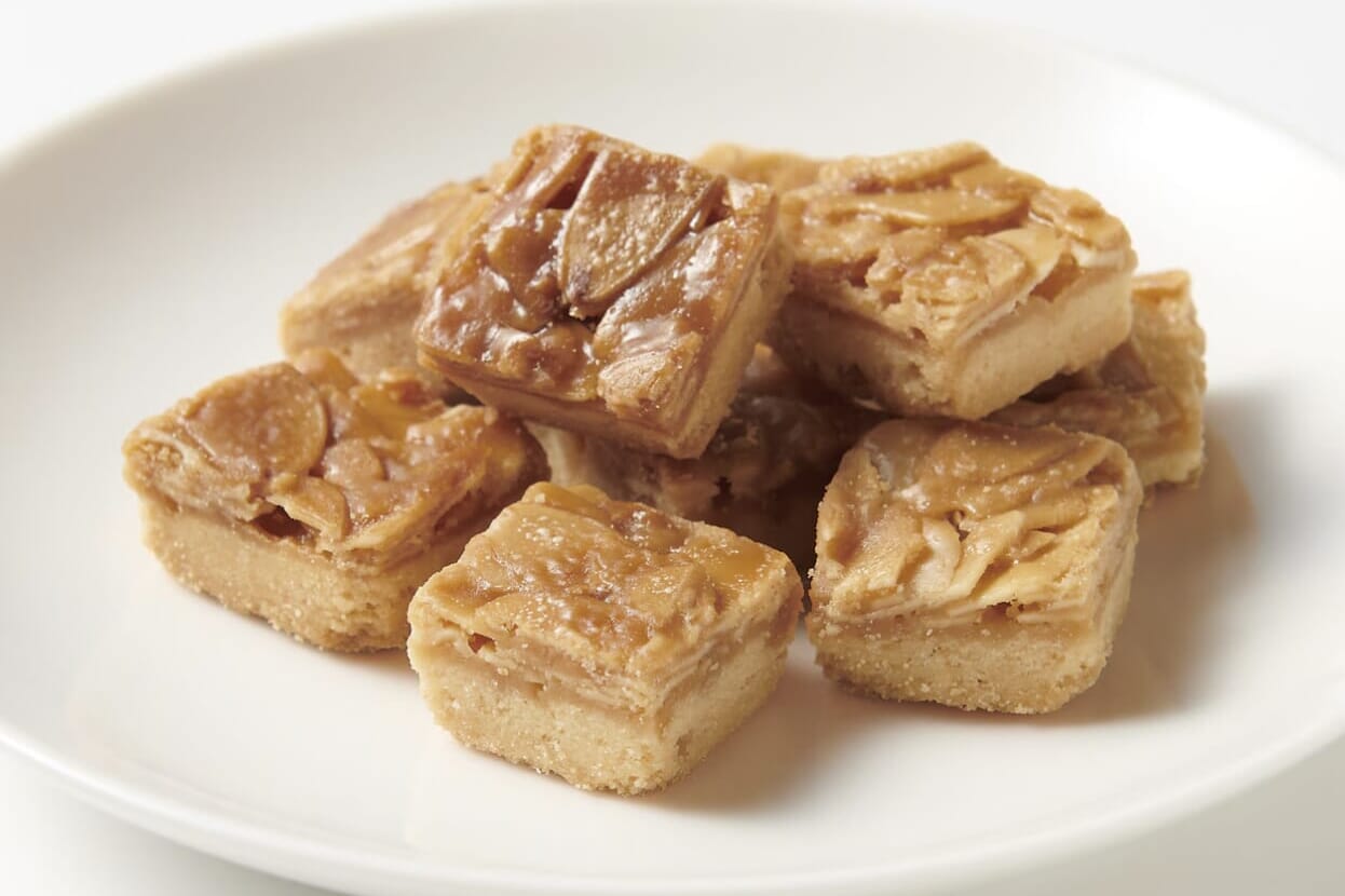 A bite-sized Muji interpretation of the French biscuit you can spot throughout Japan. These nutty cookies are a combination of dough, caramel and almonds.