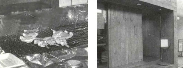 The fellow brought me a frosty mug of beer and asked me choose my o-toshi snack from a list. Zucchini tempura, bright green and tasty, ¥450. Zucchini. Man, how Tokyo’s changed. And those chicken wings, called tebasaki, crispy on the outside, dripping juicy inside, ¥220. CJ sez two thumbs up, all hands on deck. Man, there’s some mighty fine barbecue in Japan. ‘Course you won’t find no roadhouse beef brisket, but they make miracles out of a chicken.