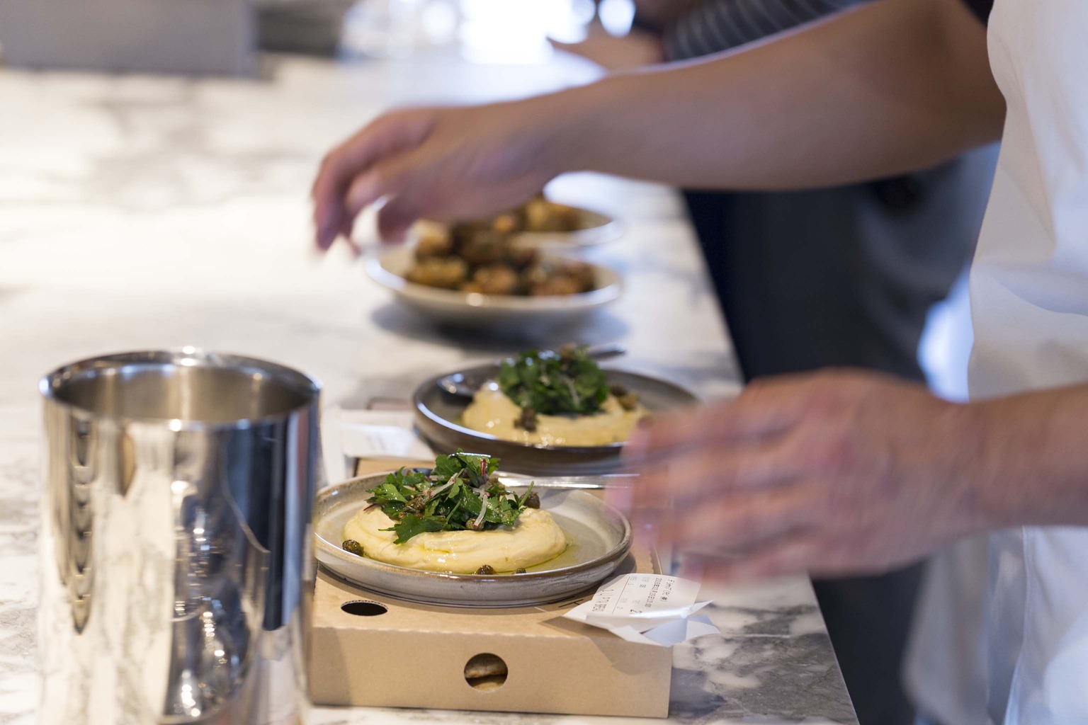 The food Chef Wade Moises has worked with the Japanese team to ensure the restaurant’s classics are all on the menu. Look forward to homemade mozzarella, freshly baked focaccia, and handmade orecchiette pasta with broccoli rabe. For dessert? Tiramisu, natch.