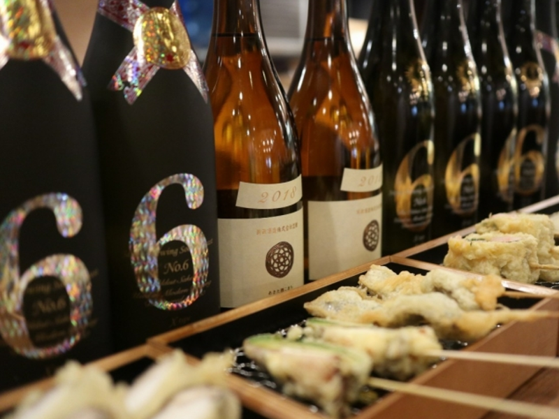 Some of the sake brands that you’ll find at Nihonshu Baru include such classics as Dassai (“sake brewed for sipping, not drinking”), Kokuryu (founded in 1804 in the mountains of Fukui), or the fruity Sharaku quickly recognized for its slight hints of peaches. Whichever brand you decide to go with, it will be served in wine glasses and paired with tempura skewers, which are the pub’s trademarks. The promotion ends on May 31.