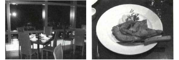 Charlie Jake says one thumb up. Good food, but not exceptional. Ain’t cheap, either, but she paid. Great view, big chairs, not cramped. You take your boss or relatives here when they get tired of Japanese food.