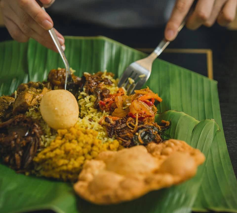 The restaurant serves one-plate lunches that include an array of moreish curries and sides including pol sambola (coconut relish), wattakka kalu pol (pumpkin curry) parippu (lentil curry) and a crispy papadum jutting out like a shark at sea. The lunch deal also includes sweet Sri Lankan cakes for dessert. If you’re aching for something specific, the al la carte menu will satisfy your cravings with rice-packed biriyani and other scrumptious dishes.