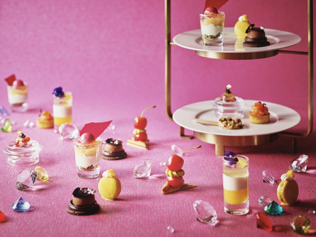 The Strings Intercontinental welcomes new pastry chef Osada Gaku and his glittering afternoon tea creation. By using premium ingredients from all over the globe, he creates an array of divine dishes that sparkle like jewels but melt in your mouth: Aribba chocolate from Ecuador, sweet and sour cherry tarts and fresh peach trifles that resemble pink sapphires. For savory delights, expect decadent foie gras mousse, tomato jellies with crystal-black caviar and yuzu carrot tarts sitting beside impressive smoked salmon.
