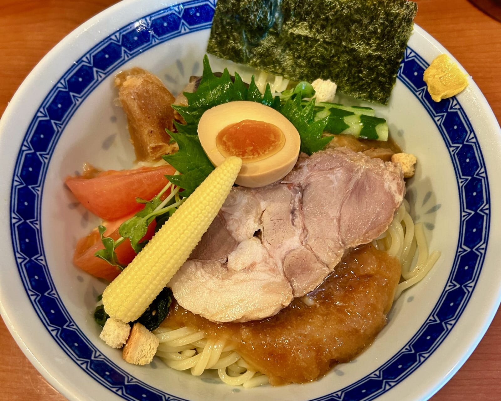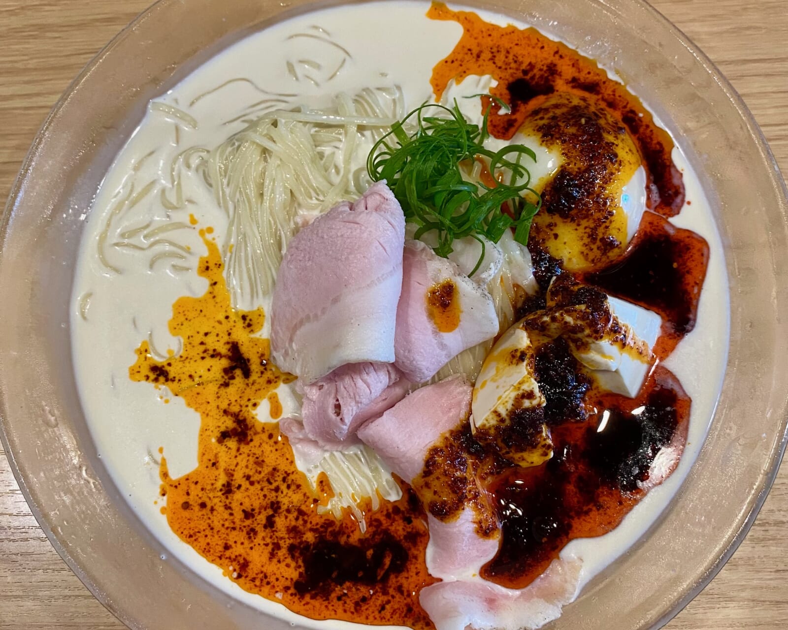 This shop’s chilled ramen offers up one of the most indulgent combinations: creamy soy milk with a subtle flavor and spicy chili oil. Anyone who loves tantanmen should try this deconstructed, creative summer ramen from Maikagura.