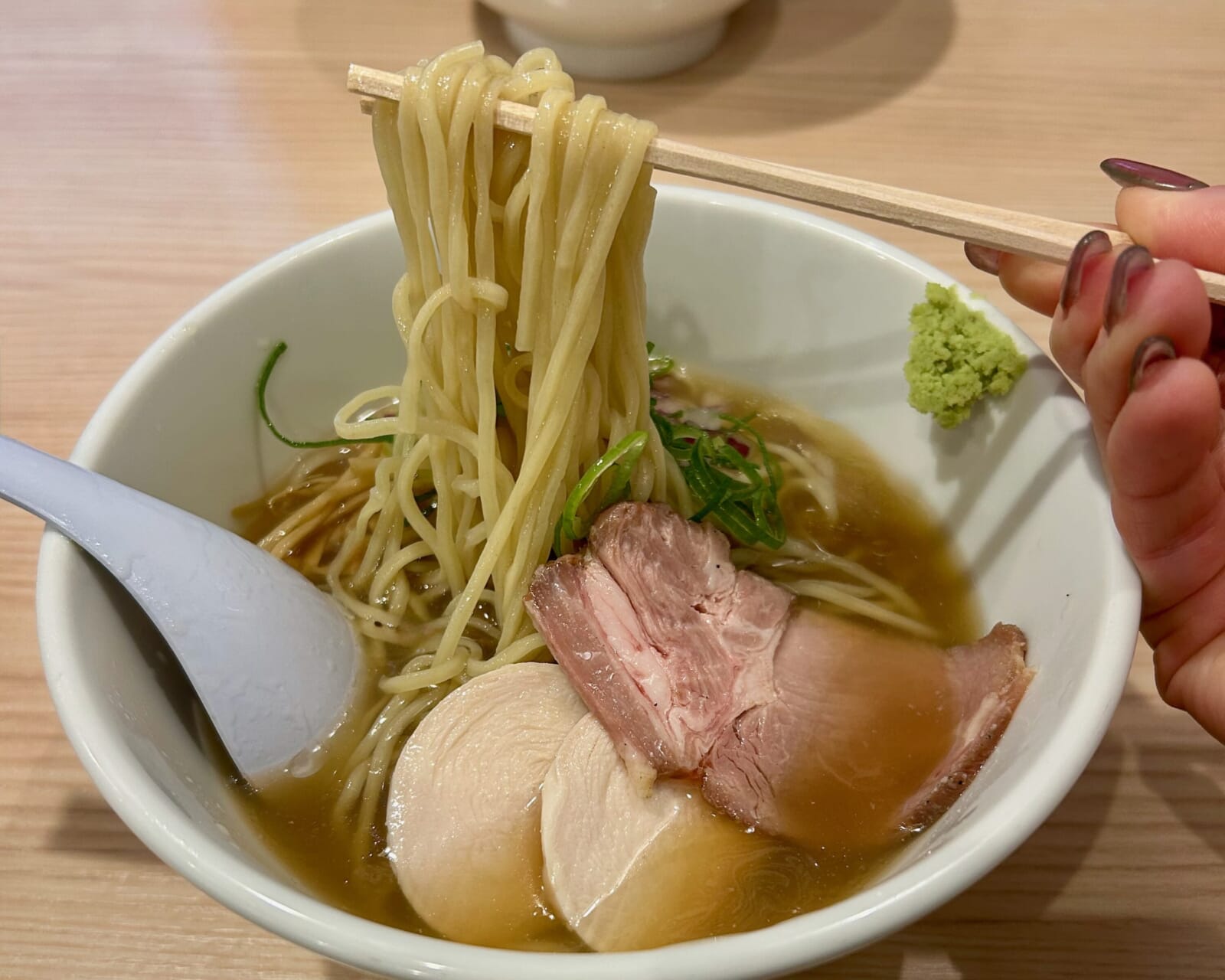 Juicy slices of chashu and tender sous-vide chicken add depth and protein. Slowly mix in the dollop of wasabi to increase the soup’s intensity, but only after you’ve enjoyed a few peaceful sips first. For those who prefer a gentler introduction to shellfish, there’s also a chicken and clam combination ramen on the menu. It dials down the briny intensity while still delivering the layered umami flavors this shop is known for.