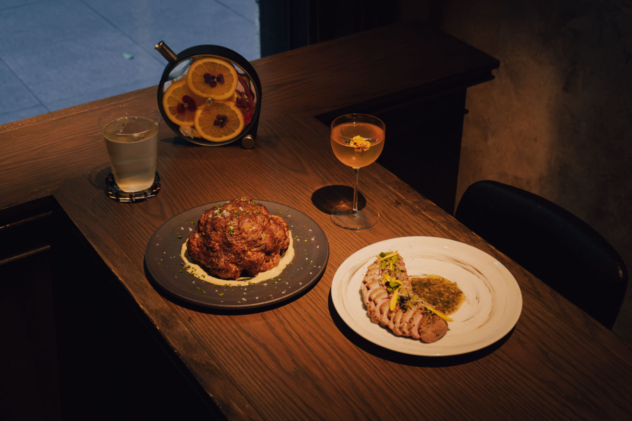 Gokan knew that a tavern wouldn’t be complete without food, and he called on some of the best chefs in Japan to curate a food menu that would harmonize with his cocktails. “It wasn’t difficult. If anything, it was fun,” he says when asked about the collaboration process. “Working with an amazing team, I felt like my area of expression just expanded.”