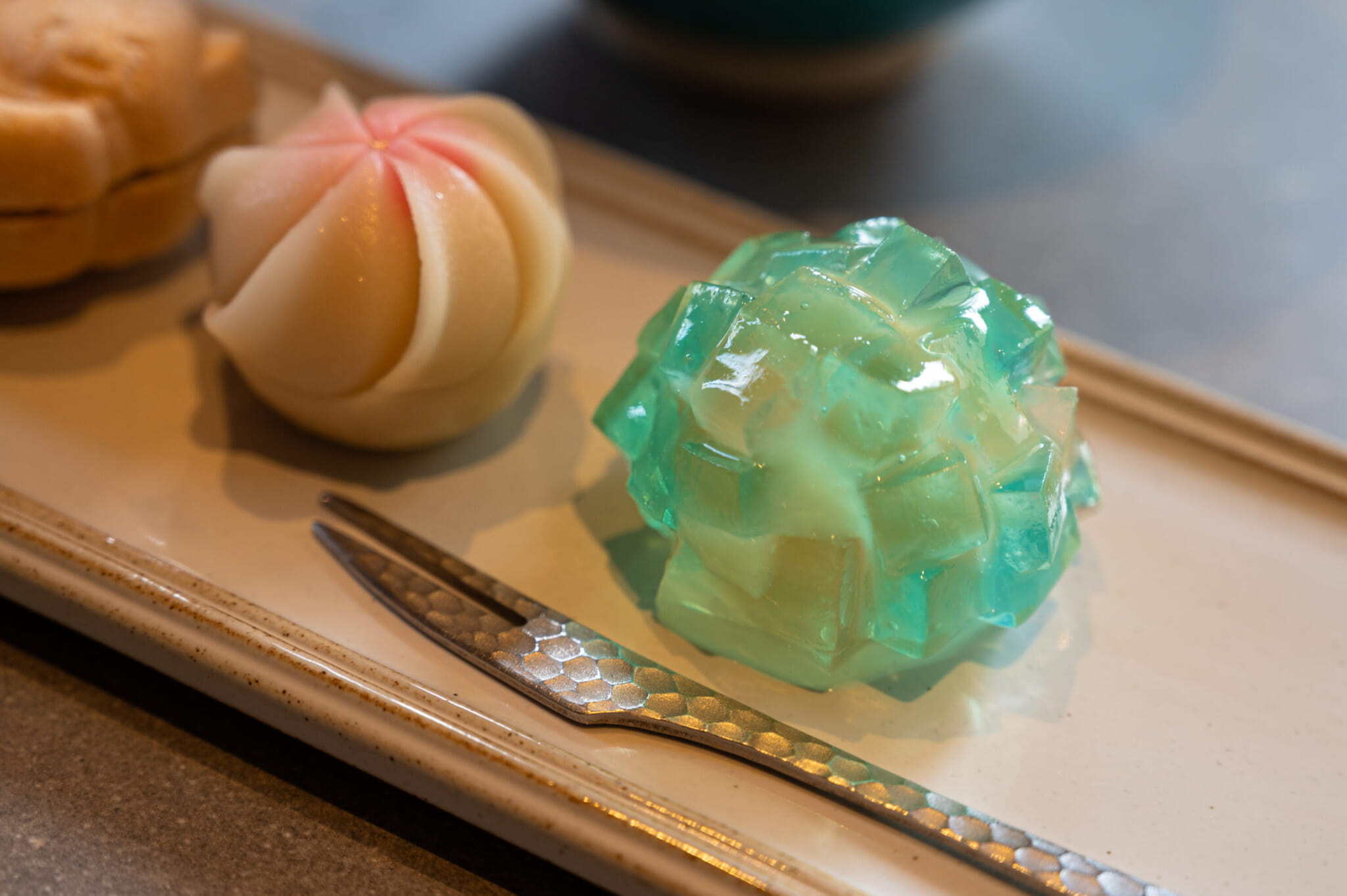 “‘Let’s go for a coffee,’ you might suggest to a friend, but when has anyone said, ‘Hey, let’s get nerikiri?’” says Juri, the mastermind behind the sweet shop and cafe. The shop’s name, Kantan na Yume, literally translates to “easy dream,” but Juri tells us that it actually comes from a Chinese proverb, meaning “to take time for yourself.” It specializes in innovative nerikiri, eaten with matcha, but also coffee, wine and gin.