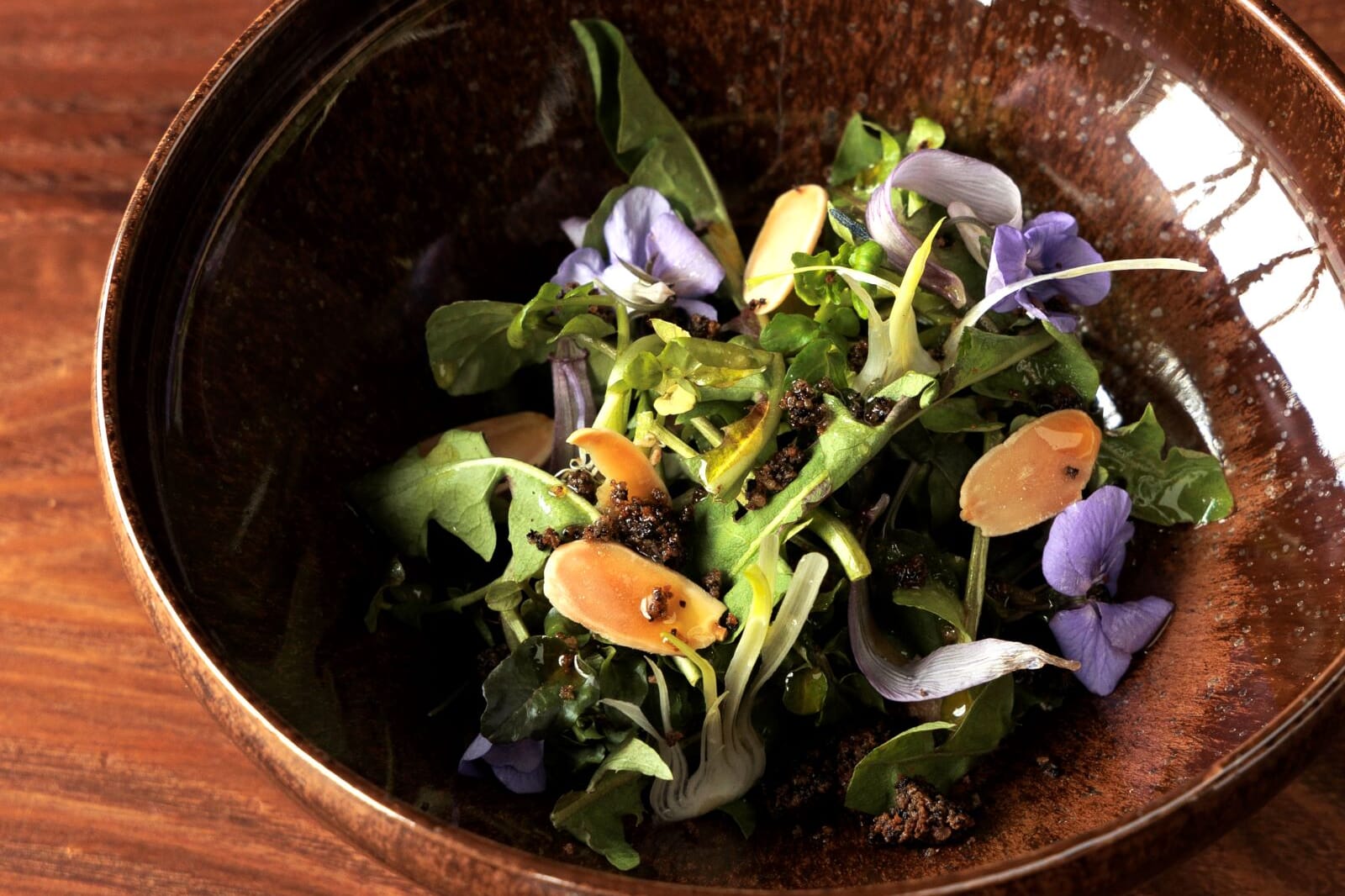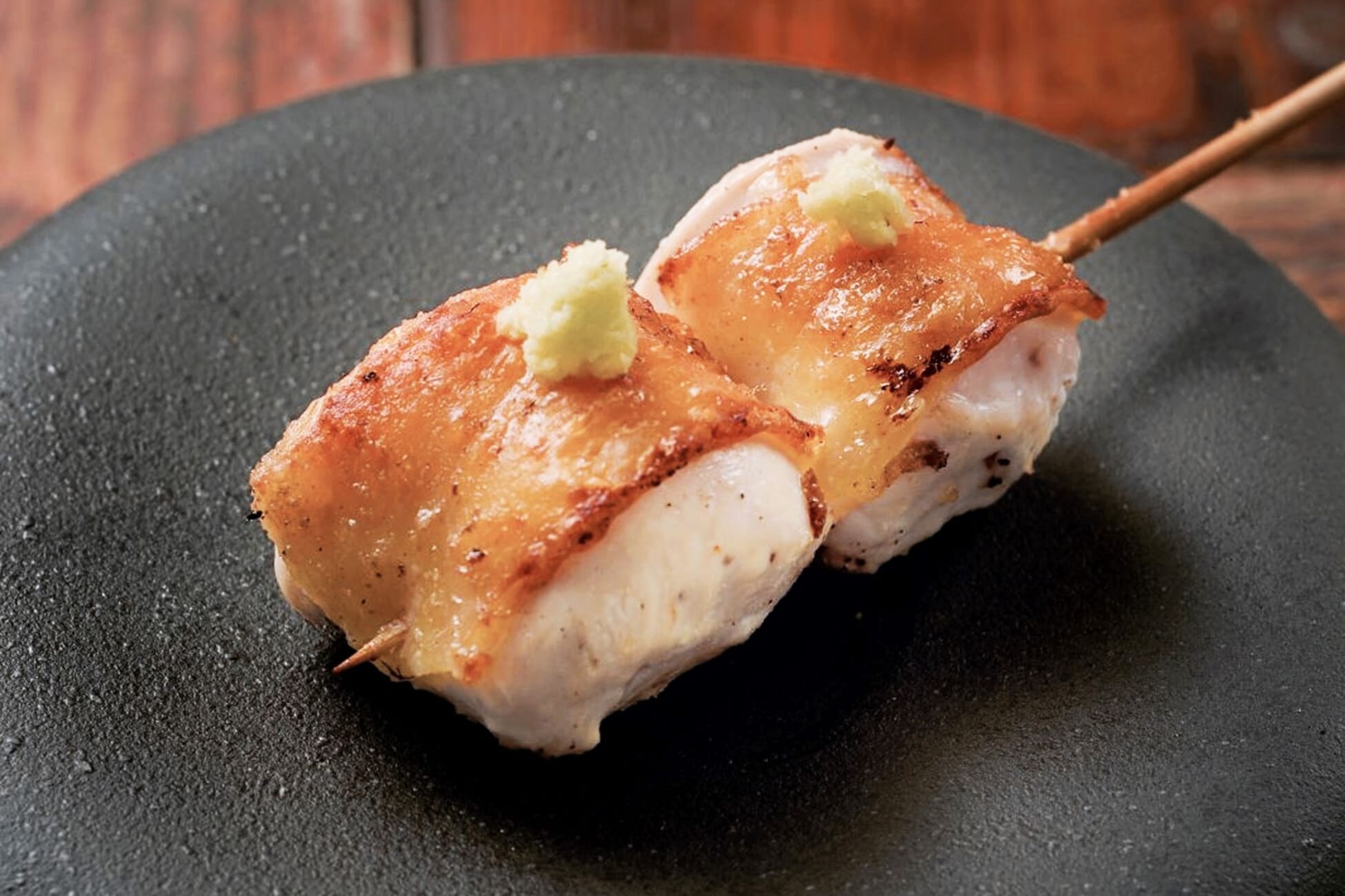 Torisho Sai serves yakitori (Japanese grilled chicken skewers). Using the ancient heat sources of charcoal and wood flames, the restaurant cooks free-range Hinai-jidori chicken to perfection. The first dish to be served is a single skewer of breast meat to highlight the simple beauty of the chicken’s flavor. Torisho Sai uses the kagoyaki technique — enveloping the chicken in flames and smoke — which descends from Miyazaki Prefecture’s culinary traditions. The meal ends with ginger rice in chicken broth, cooked in a wood-fired oven.