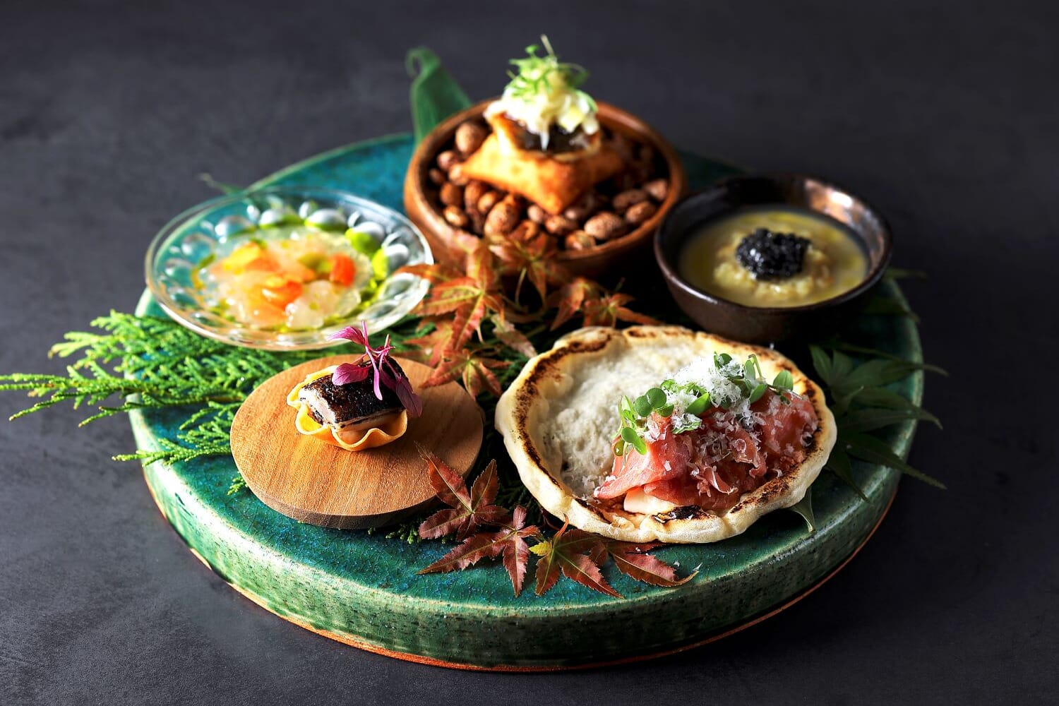 Etto is an Italian restaurant that accentuates the four seasons of Japan. The dishes are presented using a Hassun style, with an assortment of small seasonal dishes tastefully placed together on a tray. Etto means “intimacy” in Italian and there’s a closeness between the open kitchen and counter space that encourages a sense of connection between the guests and the chef. In addition to the antipasto misto, which is served on a Kiyomizu-yaki plate and decorated with seasonal leaves, five flavorful small dishes and wine pairings complete the meal.