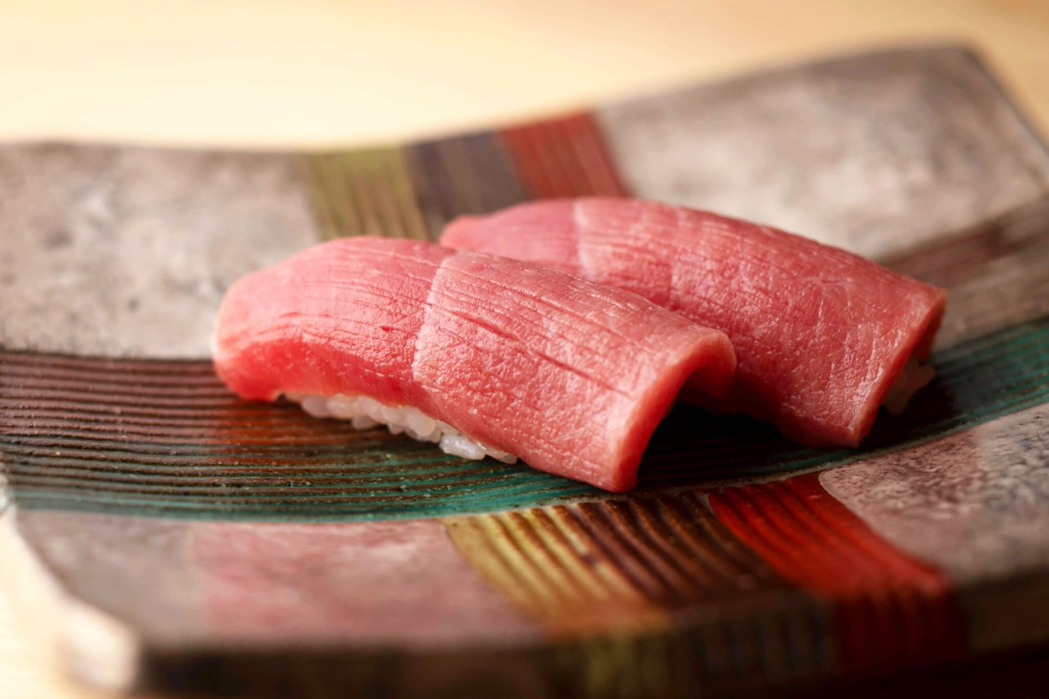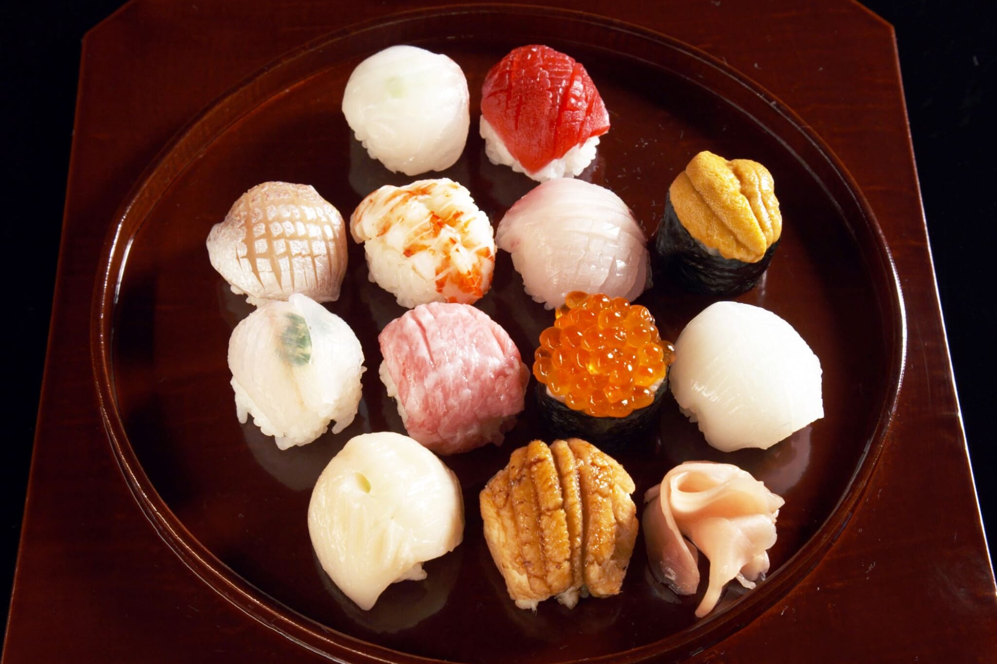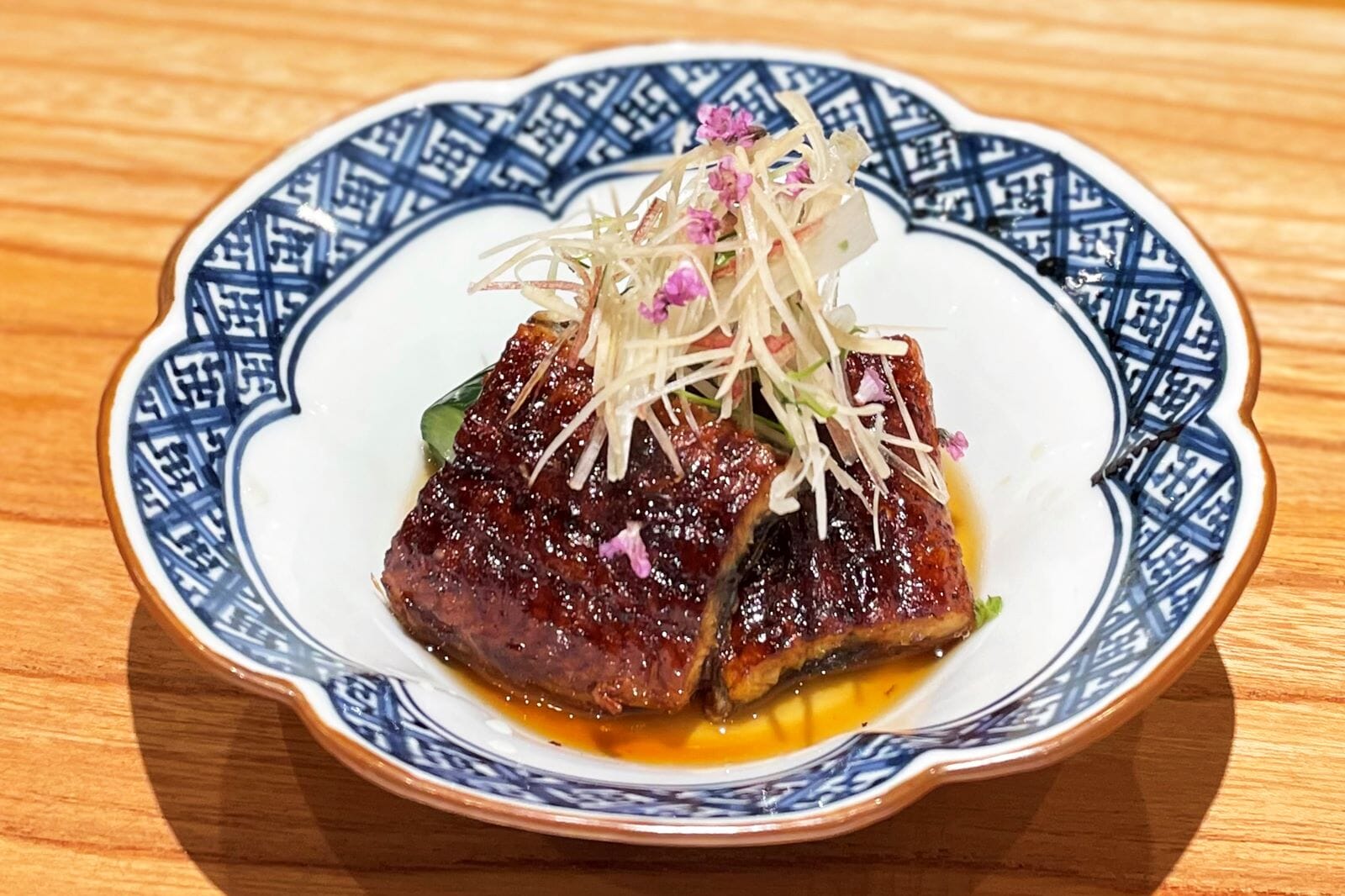 Kikunoi Sushi Ao is an innovative sushi restaurant opened by the traditional Japanese restaurant Kikunoi. It incorporates nigiri into the flow of appetizers, sashimi and soup, and also cooks ingredients in a distinctive way. For example, kuruma prawns are grilled over charcoal with the shell on, while conger eel is combined with black shichimi and kinome. The dishes are plated beautifully on tableware and sake bottles that Rosanjin, a famous epicure and gastronome of the Showa period, used.