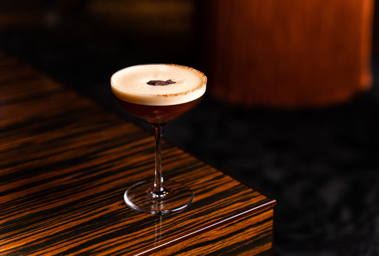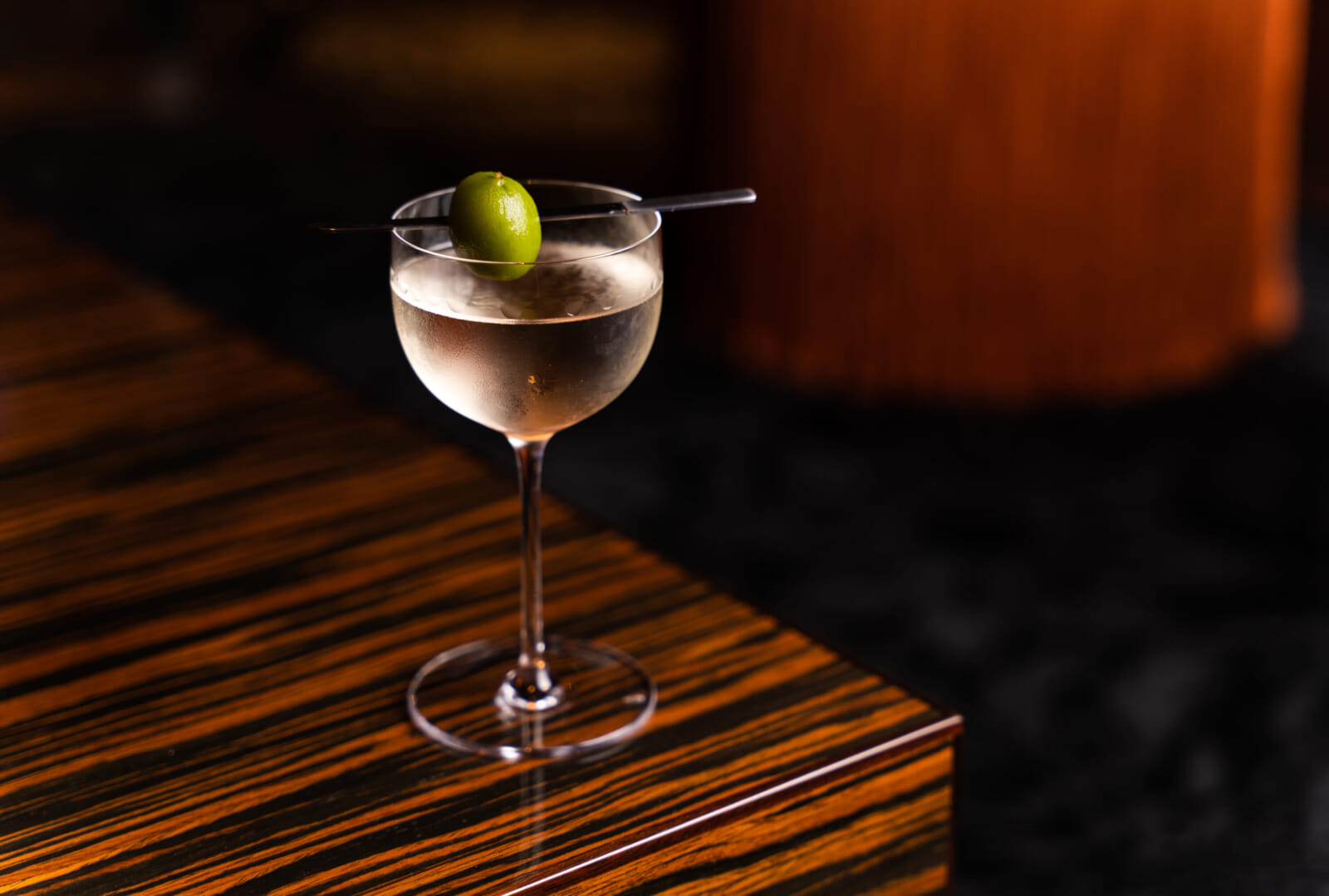 A mild drink with a pleasant aroma, the Bamboo Katana Martini is a combination of two cocktails: bamboo, a 19th-century Japanese drink that blends sherry and dry vermouth, and a wet martini, using Roku gin and kumazasa tea. Infused with a bamboo leaf and finished with a green peach compote on a mini katana, it’s a creative alternative to the classic gin martini.