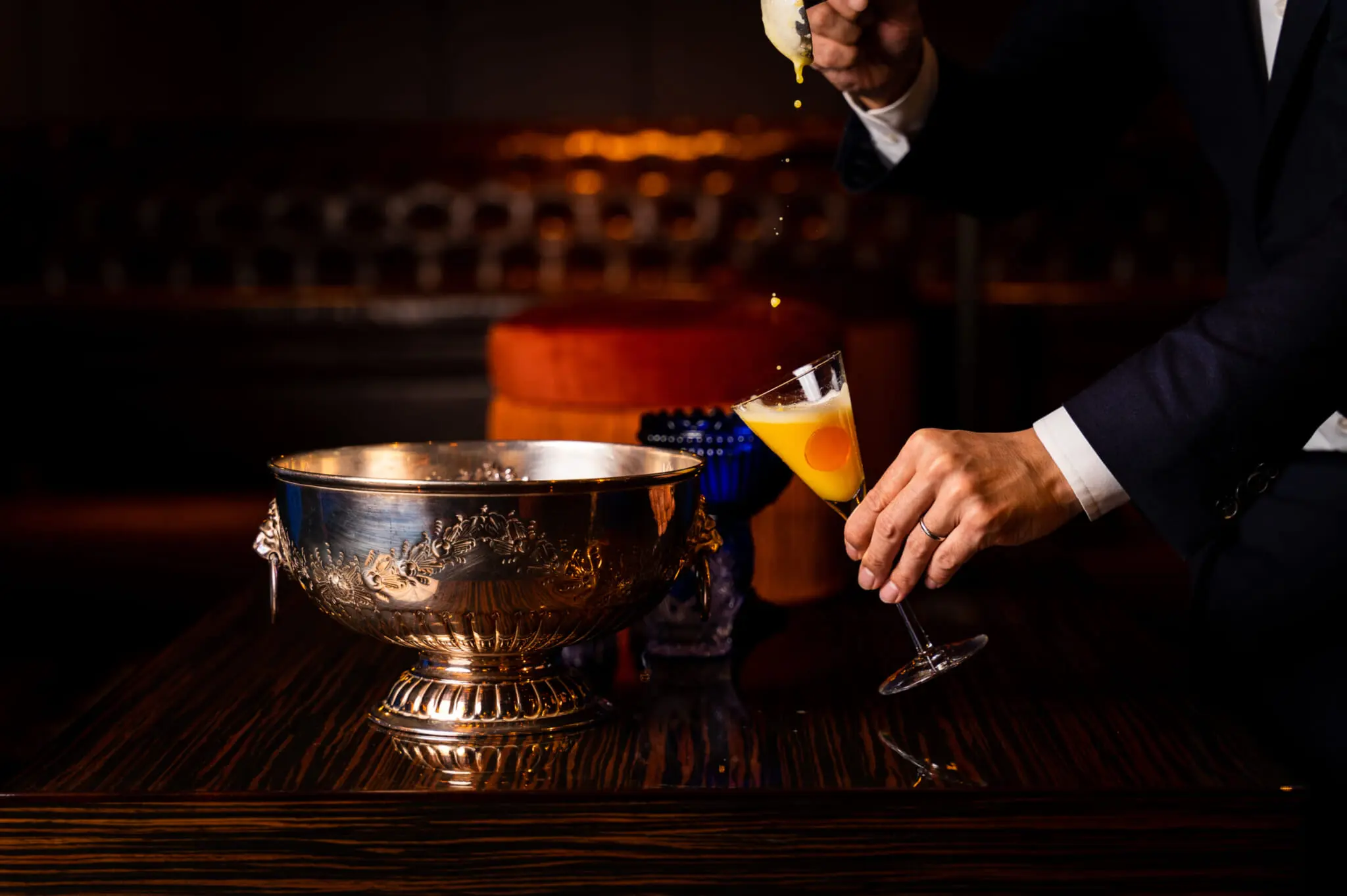 Located in the Edition Hotel, Ginza, Punch Room Tokyo has a unique and compelling concept: It’s inspired, as its name suggests, by the rich history of punch. The drink originated on trade ships and eventually made its way to the tables of aristocrats, while still retaining the adventurous and international spirit from its merchant ship origins. Punch Room channels this dual sense of luxury and exploration, with an expansive menu and interior design inspired by 19th-century private clubs in London — sumptuous and lush, with low lighting.