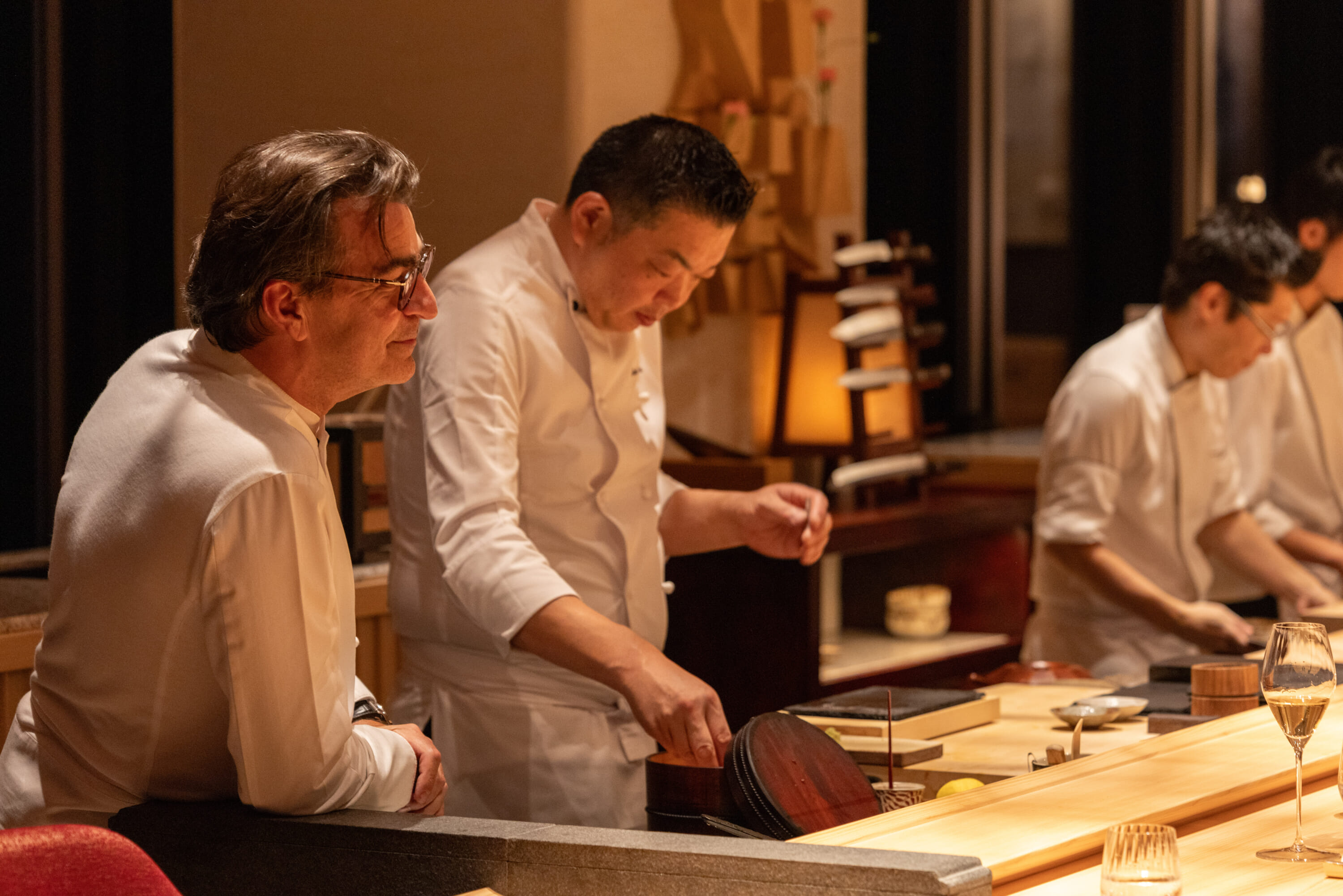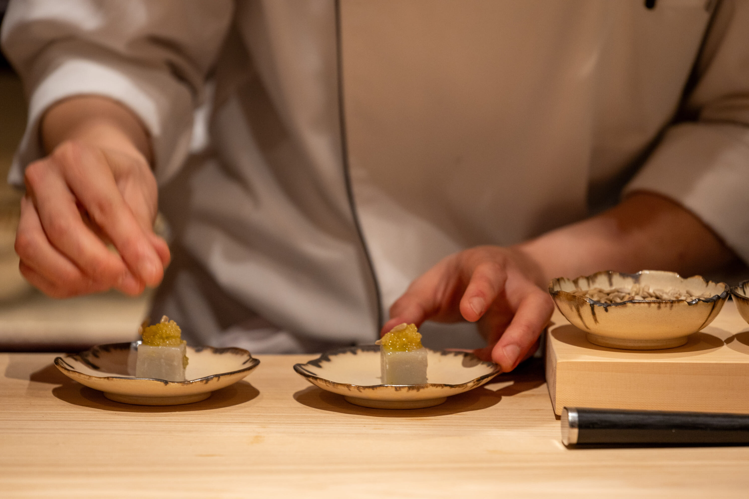 At all three restaurants, the concept is the same: It’s about creating a fine-dining omakase experience for guests that combines French and Japanese expertise. At each establishment, though, the menu and the atmosphere are different. Speaking to The Japan Times, Alléno said, “It’s about understanding the terroir of each place.” In Osaka, “a city in Japan renowned for the quality of its gastronomy,” he had to rethink his “methods and creative process by incorporating Japanese techniques and ingredients.”