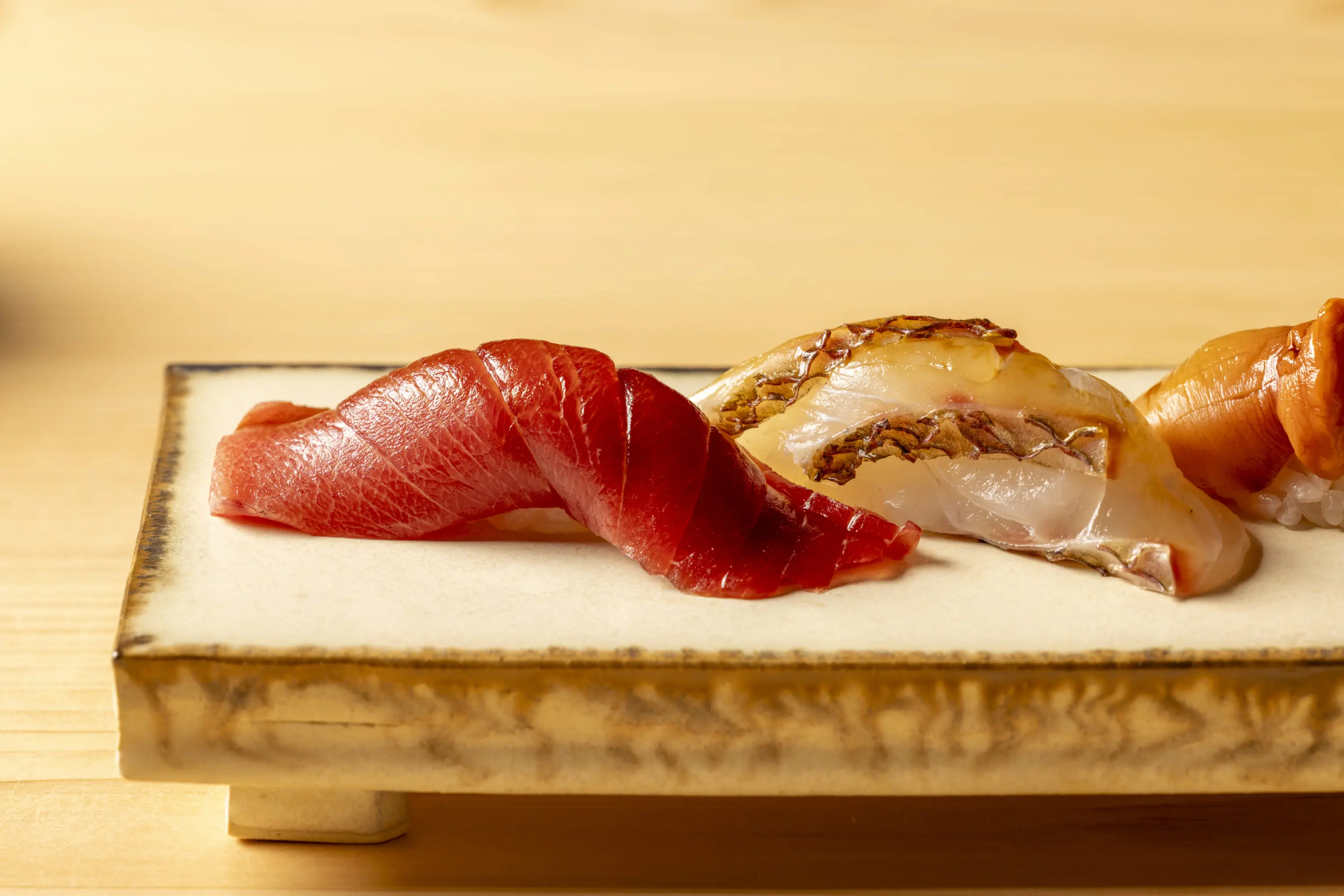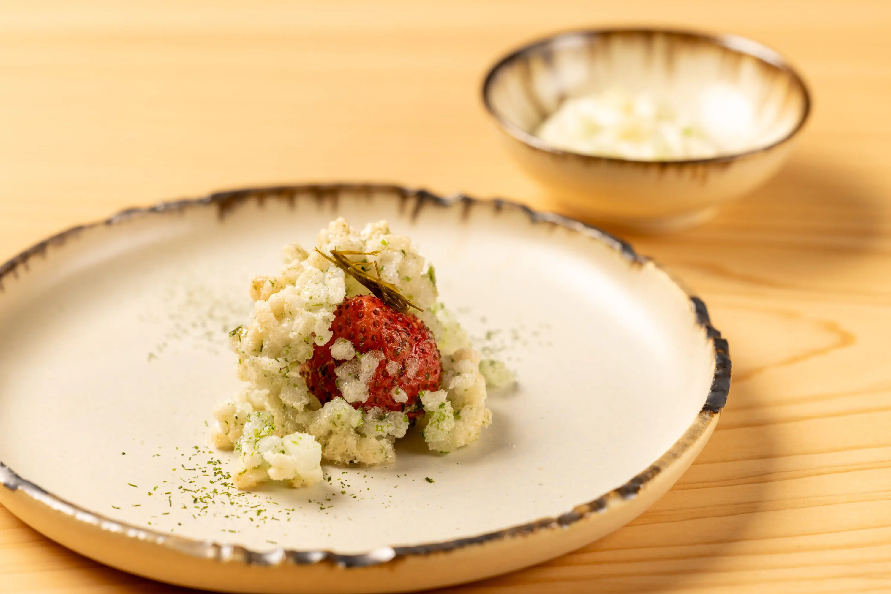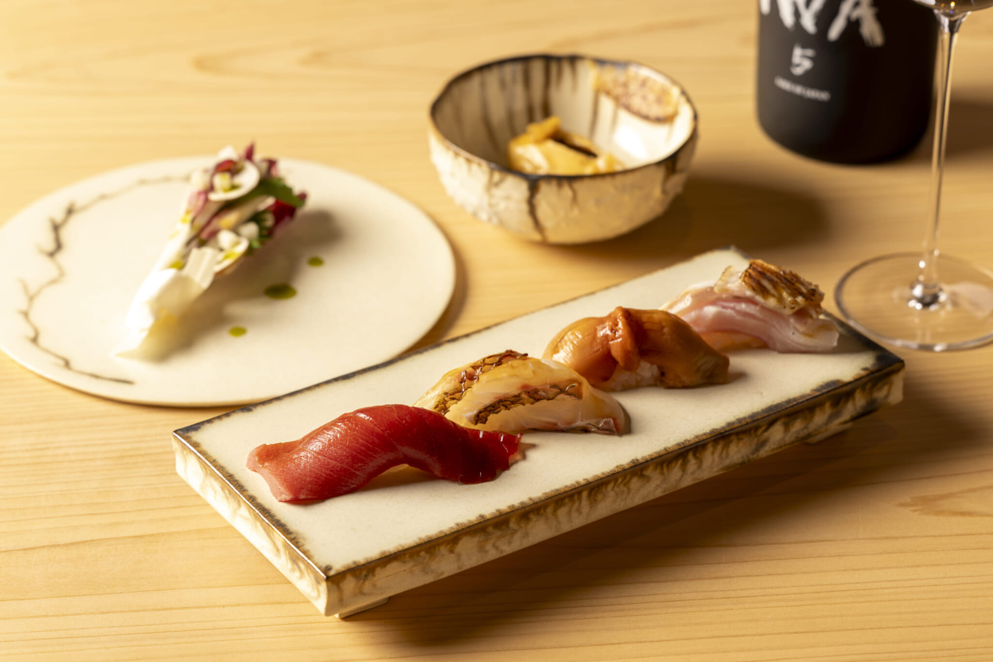 Before leaving, I had the opportunity to engage in a short conversation with Alléno, who was making a special appearance. He spoke about his love of Japan and his joy at being able to work with Yasuda and his team. The French chef was also keen to speak about the design of the restaurant, which was overseen by his wife, Laurence Bonnel-Alléno. It features a 6-meter-long tapestry inspired by haiku poetry at the entrance and “The Nest” by Tadashi Kawamata — crafted using chopsticks from natural hinoki (Japanese cypress) — on the ceiling. Across the central wall, meanwhile, are William Coggin’s hand-crafted ceramic corals, a nod to the restaurant’s name, L’Abysse, which means “deep sea” in French.