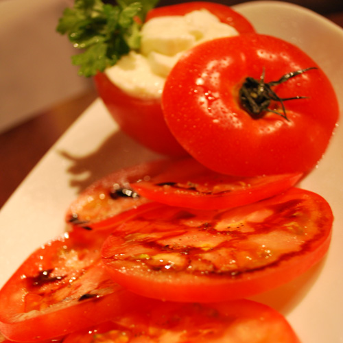 While Sala Ferrari’s cuisine is Italian overall, it reflects the diversity of the international community in Tokyo, as well as that of the restaurant’s staff. We started with a yakitori-style Caprese salad (¥1,800): skewered buffalo mozzarella and yellow and red cherry tomatoes drizzled with a light pesto sauce. The tomatoes were so sweet they reminded us of fruit, and the mozzarella melted in our mouths. This was followed by a delicious carpaccio made with raw beef and fresh parmesan cheese.