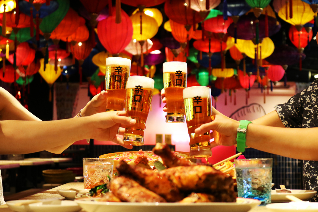 The event features an indoor beer garden with an Asian food stall atmosphere and an all-you-can-eat-and-drink plan, which goes for 3,900 yen for men and 3,500 yen for women. Other plans, such as a “late plan” (after 10:00pm) and a “short plan” are available for special discounted fees. You can even add on extras like all-you-can-eat kakigori shaved ice and miso tantan ramen.