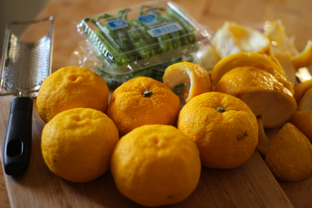 The reason none of these items have grams by them is that the final yield of your yuzu determines how much sugar you’ll be using. For example, 500g of yuzu will need 250g of sugar.