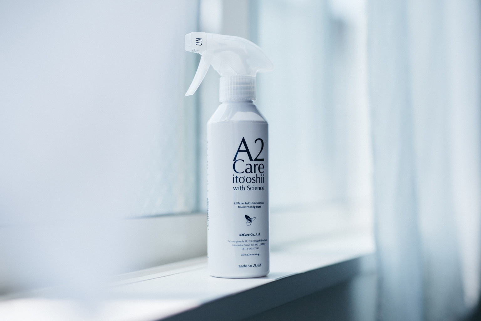 A2Care is a colorless and odorless sanitizing air refresher. Made with purified water without any surfactants, it does not cause any stickiness or damage to fabric, so it can safely be used on clothing, furniture as well as in the kitchen, bathroom or car. ¥750-¥7,500. Buy at a2care-anatc.com