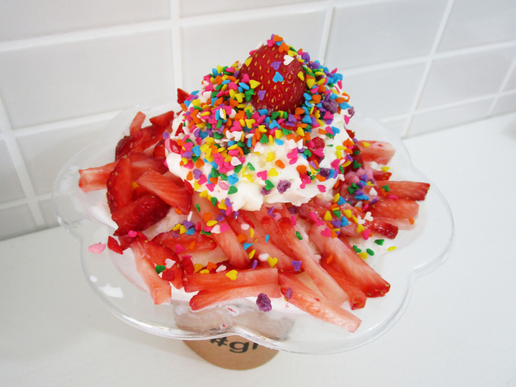 The Shimokitazawa store offers six shaved ice bases: milk, strawberry, Oreo, matcha, kinako powder, and blueberry. Or, as they’re known in the shop: #milkgram, #oreogram, #matchagram, #kinakogram, and #blueberrygram. Yes, they’re pretty dedicated to the theme. The milk base is the best option for those with creative tendencies, as it’s virtually a blank canvas for your topping desires. It also comes at a discount (¥680 per serving while the other bases cost ¥880 each), giving more wiggle room for your topping budget.