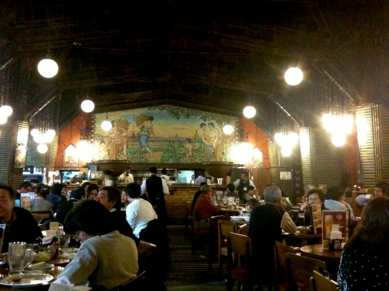 I randomly wandered into this building off of Ginza exit A2. I looked around and saw mainly tables of men having a good chat with their friends over a pint of beer. The atmosphere was lively in the background there was a huge tiled mural of half naked women gathering sheaves of wheat. For a man, perhaps this was paradise. This is the original Sapporo Lion Beer Hall in Ginza. Built in 1934 and designed by Mr Eizou Sugawara who was one of the best architects in Japan at the time. The interior is a gothic/art deco style and for a moment I wondered what it would be like to be in this beer hall in the 1940s during the middle of a war. What kind of men would be in this beer hall at that time and what would they be discussing? I just read an article yesterday about the on-going debate between China and Japan over what happened in the past: Click here to read the article. As a female, Chinese Canadian, I could only wonder about the conversations that have taken place in this beer hall.
