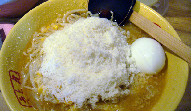 I think the folks at Tsukumo Ramen are cut from the same cloth, because their pork broth-based ramen topped with a mound of shaved fresh Hokkaido cheese, which melts into the ramen and makes the broth creamy and buttery, encompasses the same concept – that is to say: creamy ramen!