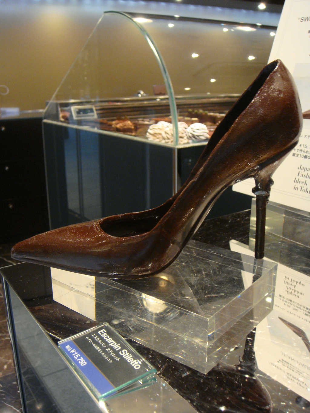 30,000 yen for a pair of couture stilettos in today’s high fashion world is a steal – unless they melt in your mouth! Then again, with fashion trends coming and going as quickly as they do, maybe an investment in a stiletto heel made of luxurious chocolate is the way to go. Jean-Paul Gaultier, eat your heart out – the other Jean-Paul (Hevin, that is) has combined the two great weaknesses of women everywhere – chocolate and shoes – to create a chocolate heel!