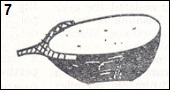 1. Trim stem slightly and slice in half lengthwise each bei-nasu. Slice off just enough of the rounded bottom to allow the eggplant to lie still (illustration 7). Save these slivers for use in testing the heat of the frying oil.