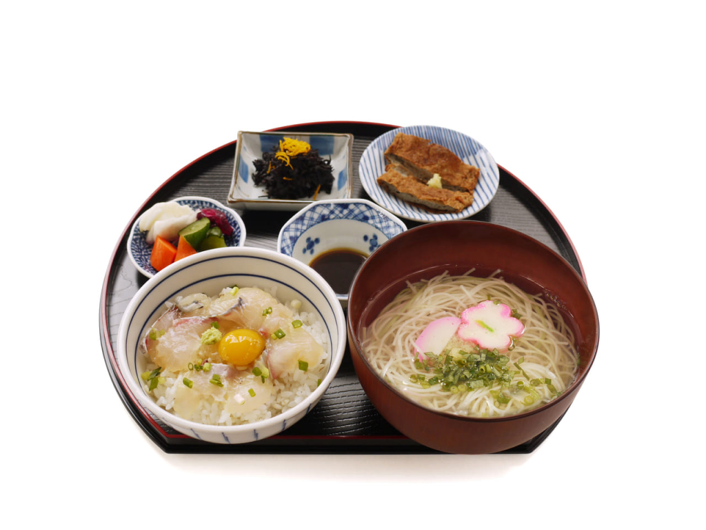 Coastal Matsuyama is blessed with an abundance of delicacies from the mountains and the sea. One of its most notable dishes is taimeshi (a dish made with sea bream and rice), which you’ll find here in the form of classic teishoku (set meal) dishes with plenty of vegetables and another delicacy, jakoten (a local type of fish cake from Ehime Prefecture). To go with your meal, there’s a selection of five sakes from venerable breweries, or if you prefer, there’s Dogo Beer, an award-winning beer from a microbrewery based in the famous onsen town of Dogo. The bubbles are stronger than your average ale as it’s supposed to be enjoyed after a dip in the hot springs.