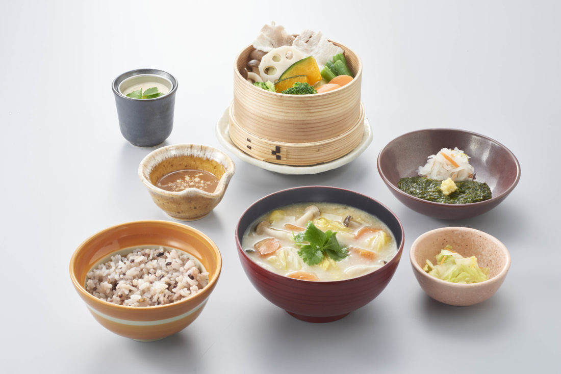 For those looking for a filling, veggie-based meal, the bamboo steamer-cooked vegetables with barley miso soup and sides (¥898) may be just the ticket.