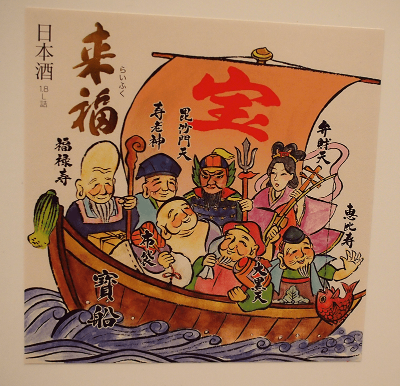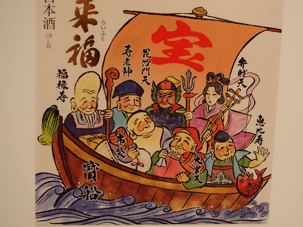 Images of the Seven Lucky Gods can be found in many places around Japan, including what can only be a very lucky bottle of sake