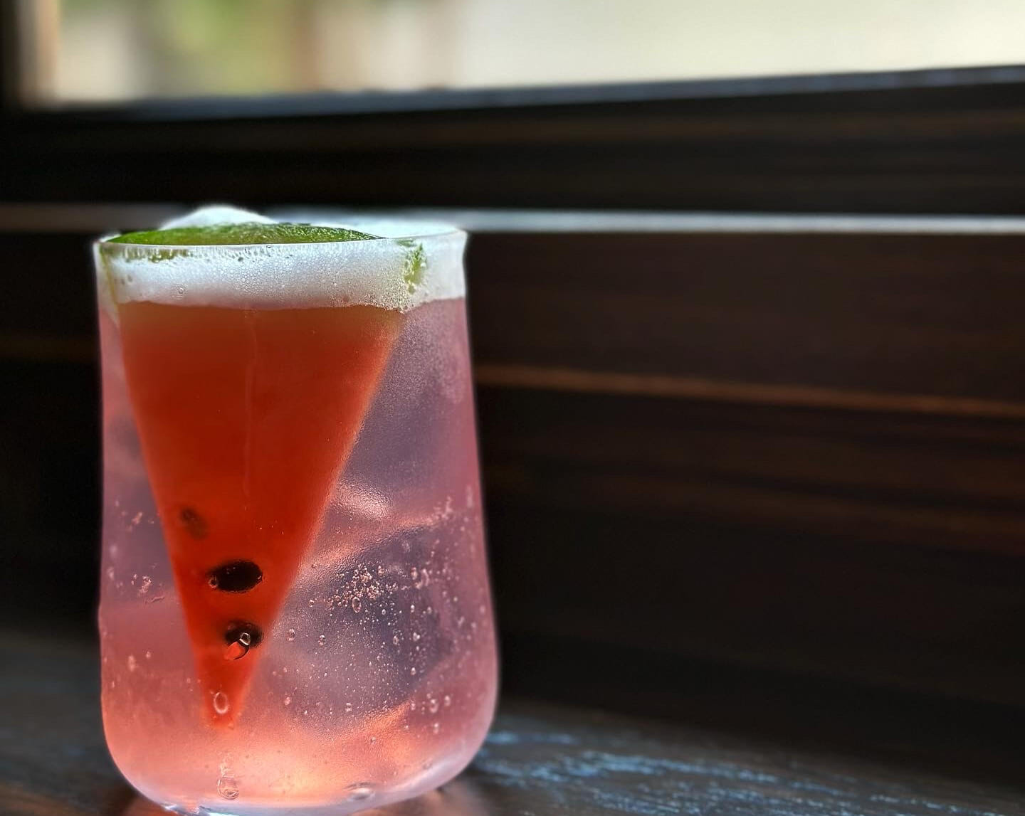 Other times, his creations are more spirit-focused, like the New-groni, a recent addition to the menu. A complex spin on the classic Negroni cocktail, it contains experimental ingredients like distilled Tabasco and vermouth made from fermented strawberry juice. As somewhat of a palate cleanser and light snack, a set of rice crackers with a dab of jam is offered on the side — a nostalgic nod to his childhood.