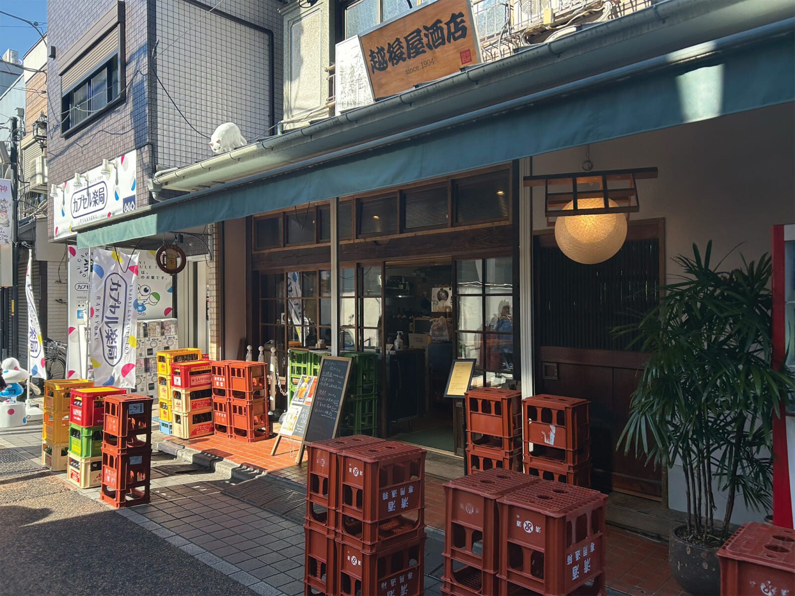 If you’re looking for an authentic place to mingle with locals, make a stop at Echigoya Honten, a beloved establishment since 1904. With both indoor and outdoor seating, it offers a relaxed setting where you can enjoy a drink and soak in the lively atmosphere. Plastic crates stacked into tables create a casual space for drinks, perfect for people-watching. Echigoya sources specialty sake from across Japan and offers the rare Ebisu amber beer on tap.